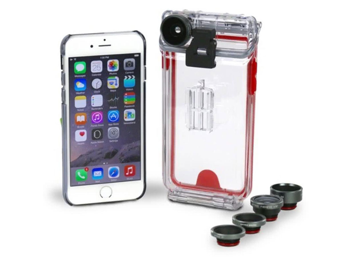 Op de waterdichte behuizing voor de iPhone SE/5s/5 kunnen één van de vier meegeleverde lenzen gemonteerd worden. Kies voor de 0° lens voor normale fotografie en video, of kies voor de groothoeklens met een hoek van 165°, een telelens met 2x zoom, of een macrolens. Alle lenzen zijn gemaakt van aluminium en glas en van buitengewoon goede, heldere kwaliteit. De opnames die met deze lenzen gemaakt kunnen worden zijn geweldig! Lensdoekjes en een beschermende hoes om de lenzen in op te bergen worden bovendien meegeleverd.