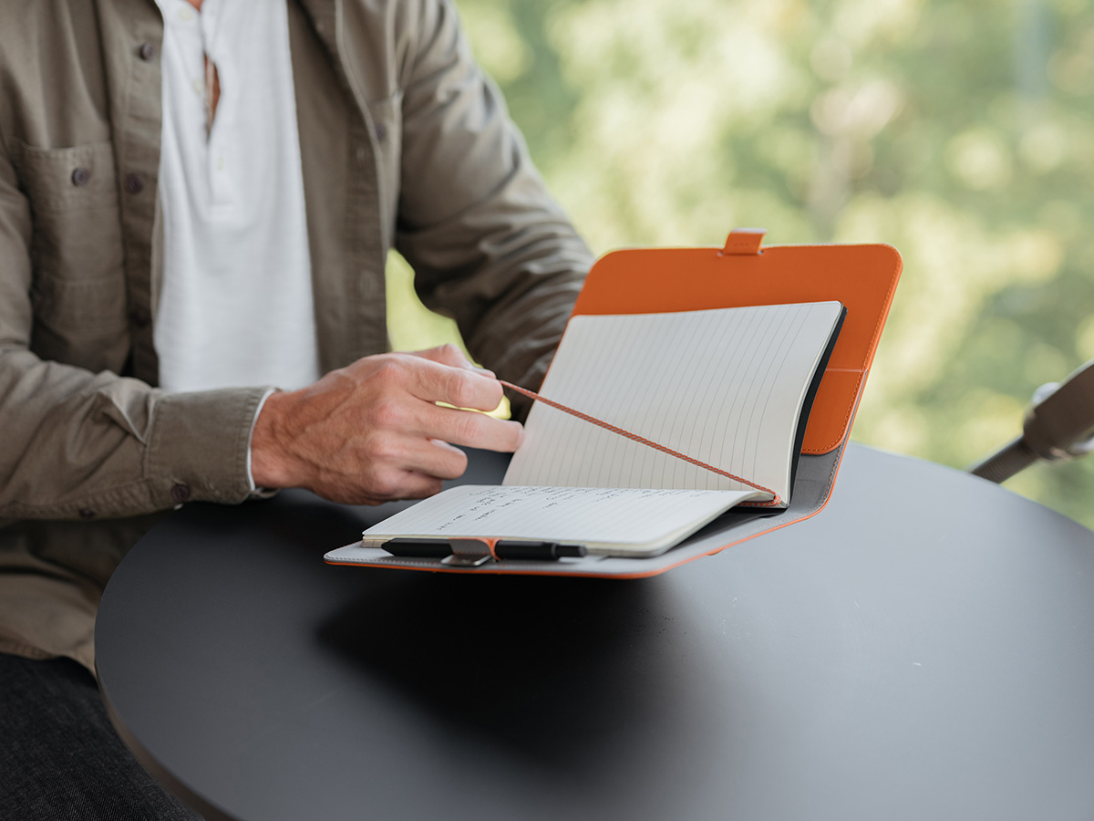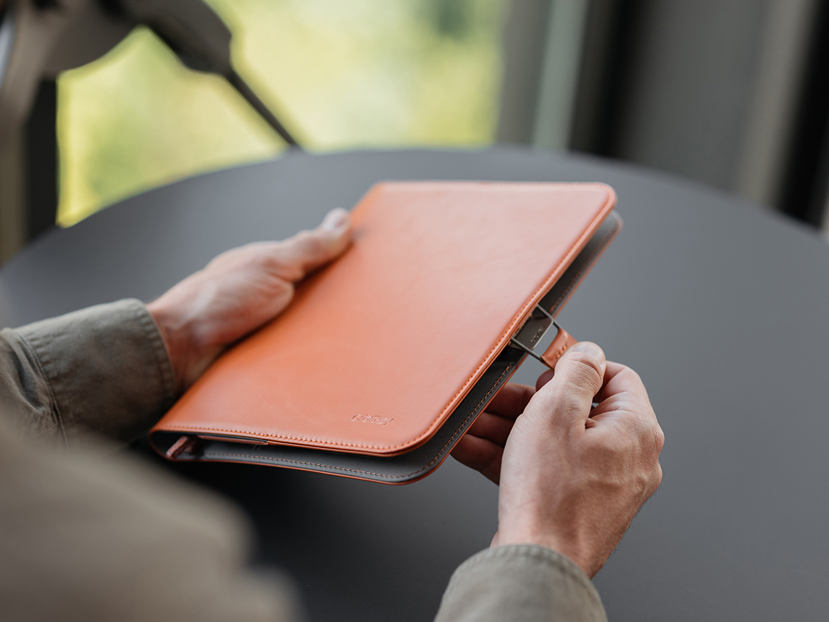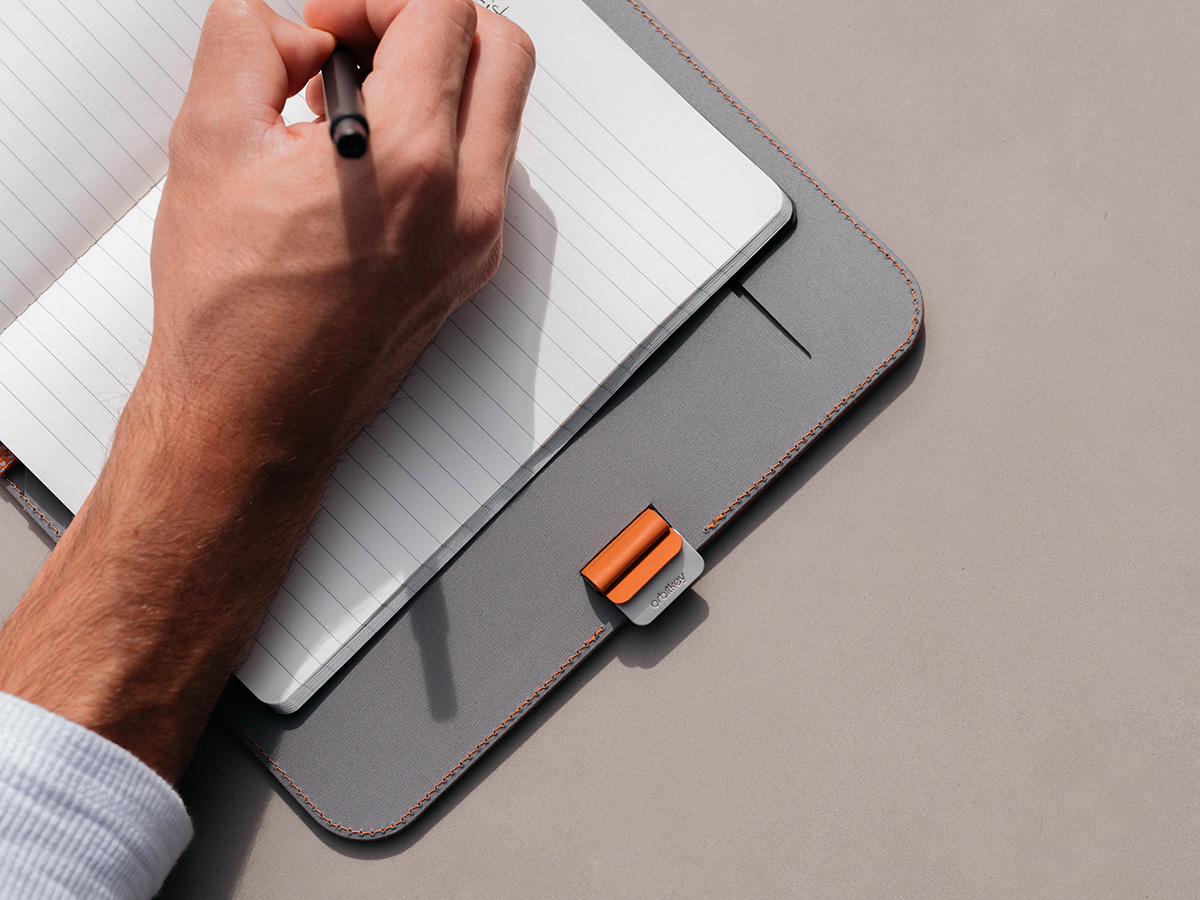 De Compendium A5 van Orbitkey beschikt verder over vakjes voor passen of visitekaartjes. Deze zijn op een fraaie, slimme manier verborgen waardoor ze niet in het zicht zitten, maar altijd onder handbereik zijn. Verder is er opbergplek voor een pen én kunt u een tablet (formaat iPad Mini 6 of kleiner) in de map opbergen.