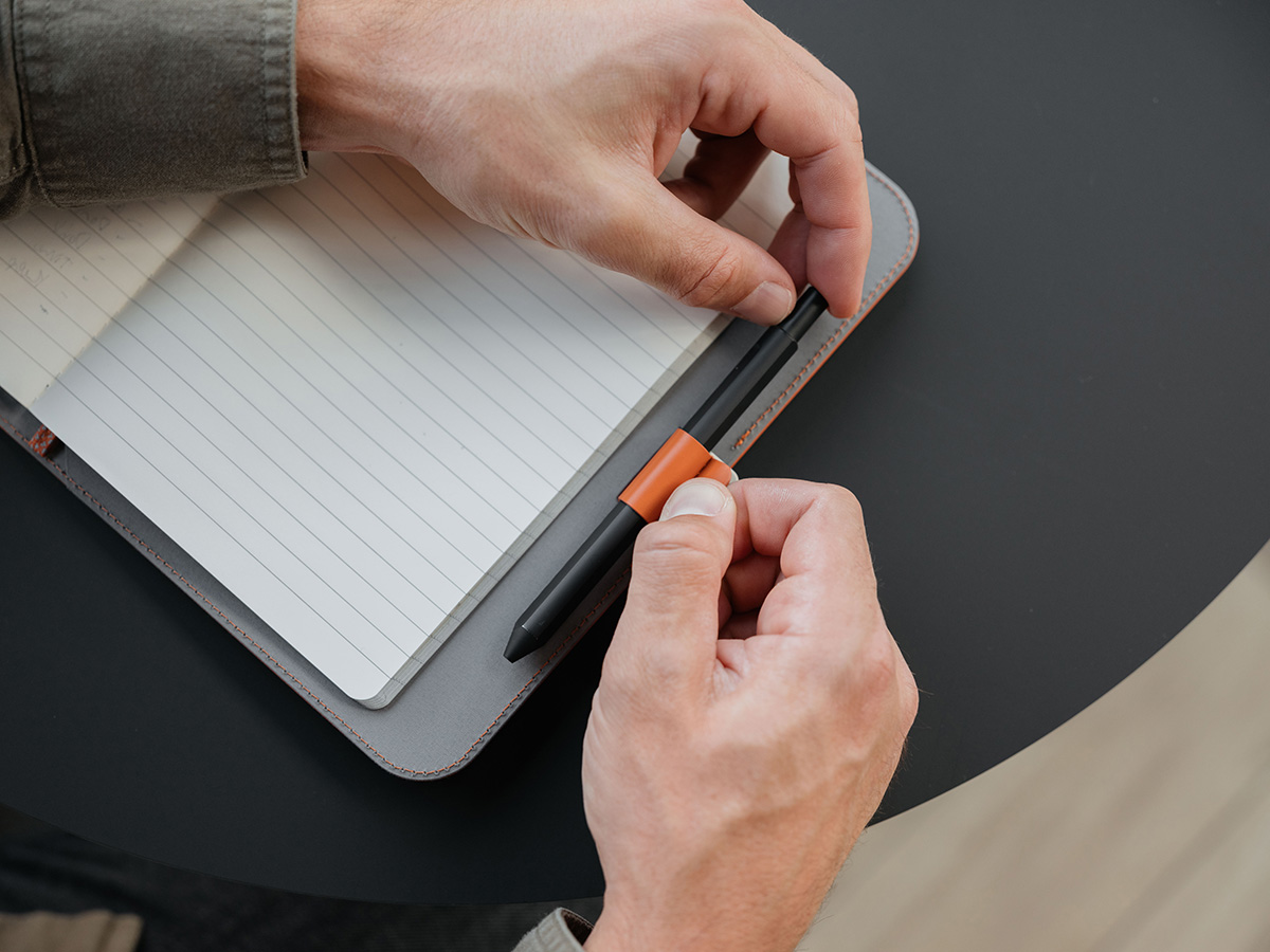 De sluiting van de Orbitkey Compendium A5 heeft veel aandacht gekregen. In plaats van de gebruikelijke rits of drukknoop heeft de Compendium een unieke elastische sluiting, die snelle, betrouwbare toegang geeft tot uw notities.