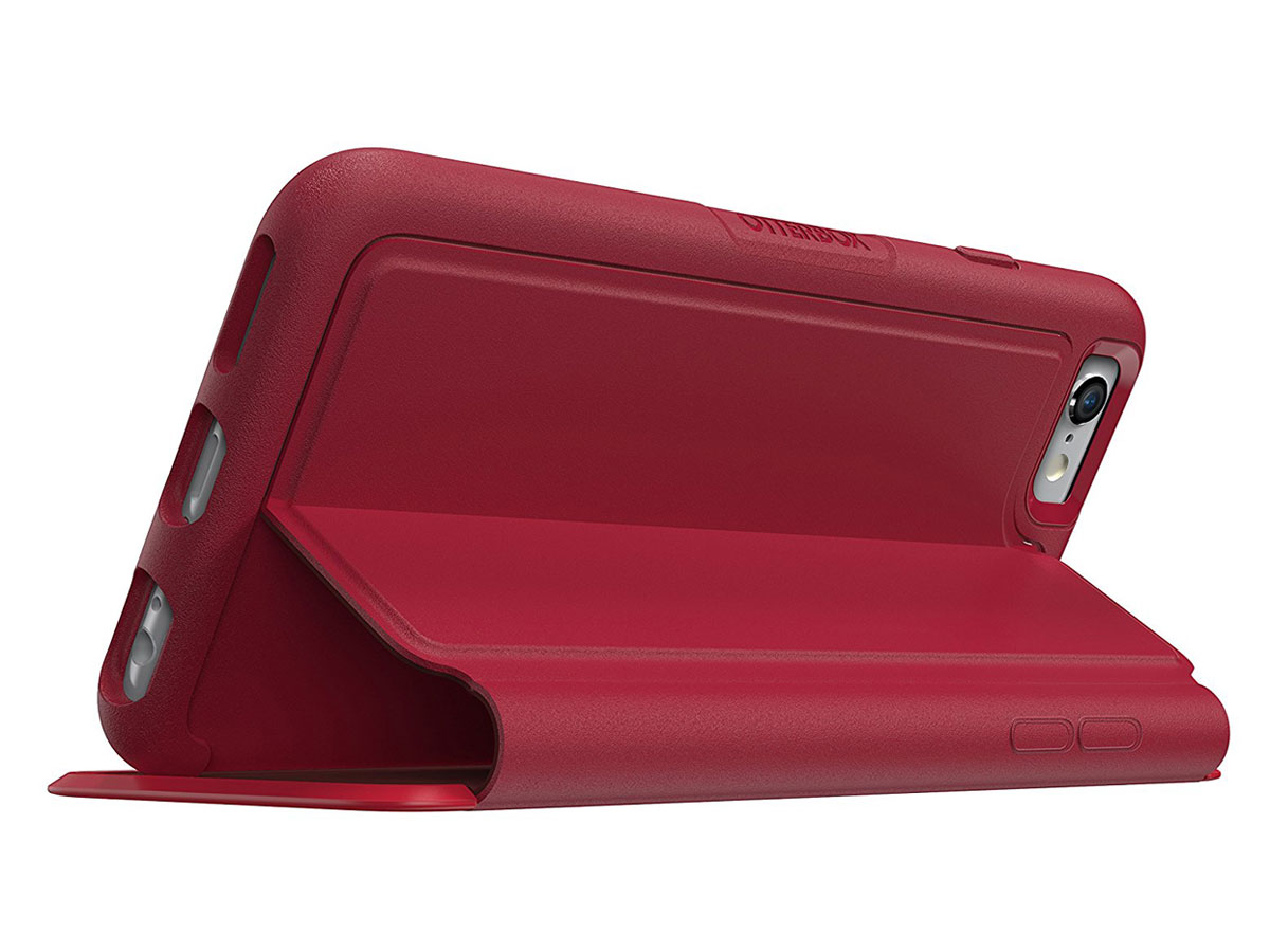 Deze super sterke basis van dit iPhone 6/6s hoesje van Otterbox is bekleed met chique rood kunstleer, wat voor een stijlvolle en hoogwaardige uitstraling zorgt. Het kunstleer vormt ook een klepje dat magnetisch over het scherm van de iPhone sluit voor 360 graden bescherming.
