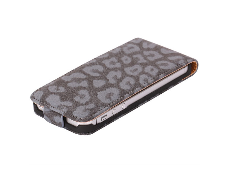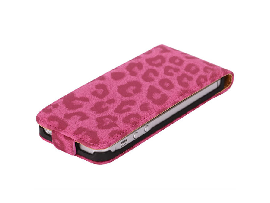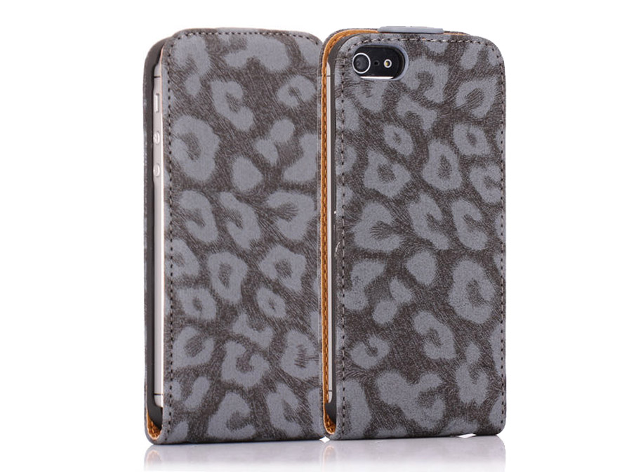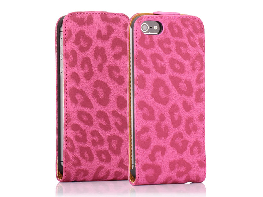 Deze fraaie, slanke flip case is speciaal ontworpen voor de iPhone 5 en iPhone 5S. De case is gemaakt van fraai kunstleer met een hippe panter-print en verkrijgbaar in twee populaire kleuren.