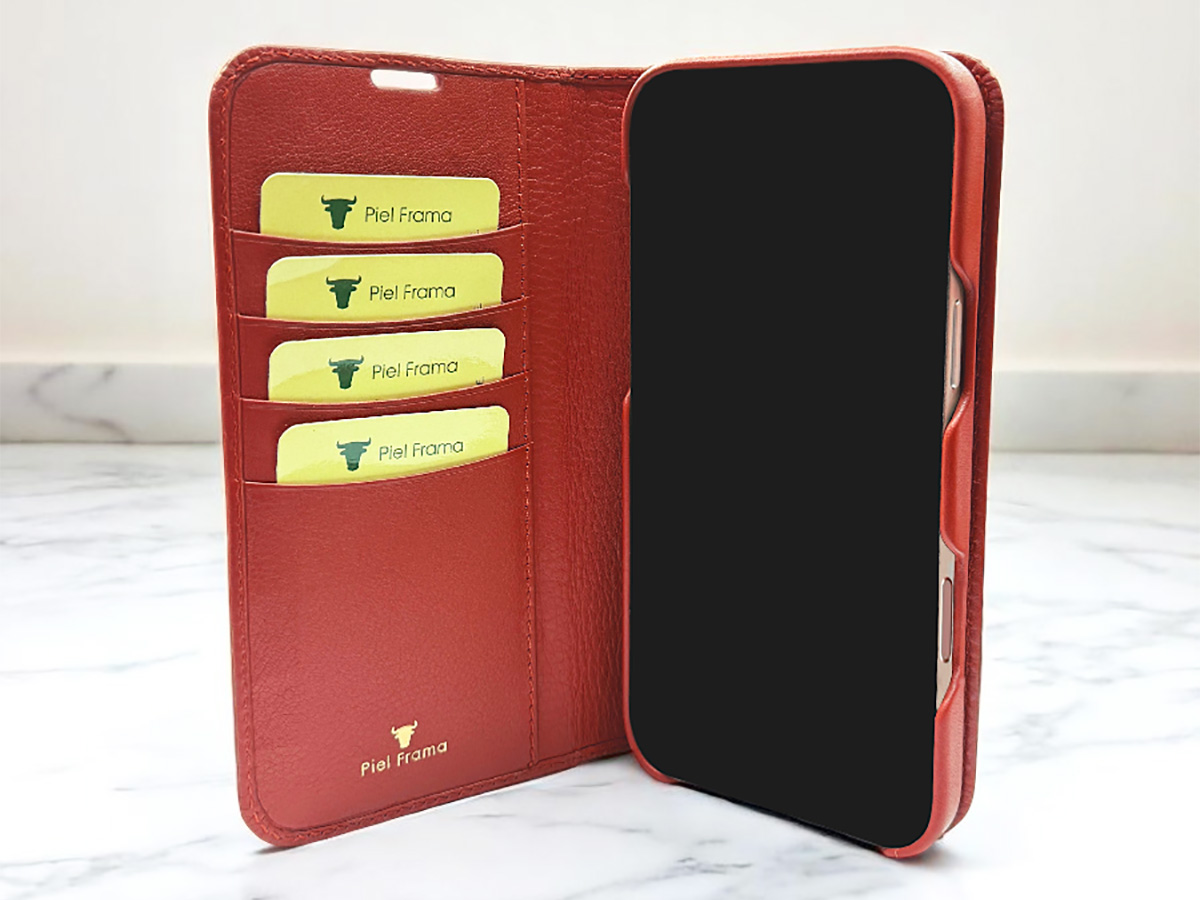 De bescherming van dit Piel Frama iPhone 17 Pro Max hoesje is zeer doeltreffend. De iPhone wordt eerst in een met leer beklede polycarbonaat shell geklikt, waarna u deze magnetisch in de omslag kunt plaatsen. Deze omslag zorgt voor een extra laag bescherming rondom, en biedt de camera bovendien volledige bescherming. Let op: het nadeel hiervan is dat u de omslag moet verwijderen als u een foto wilt nemen!