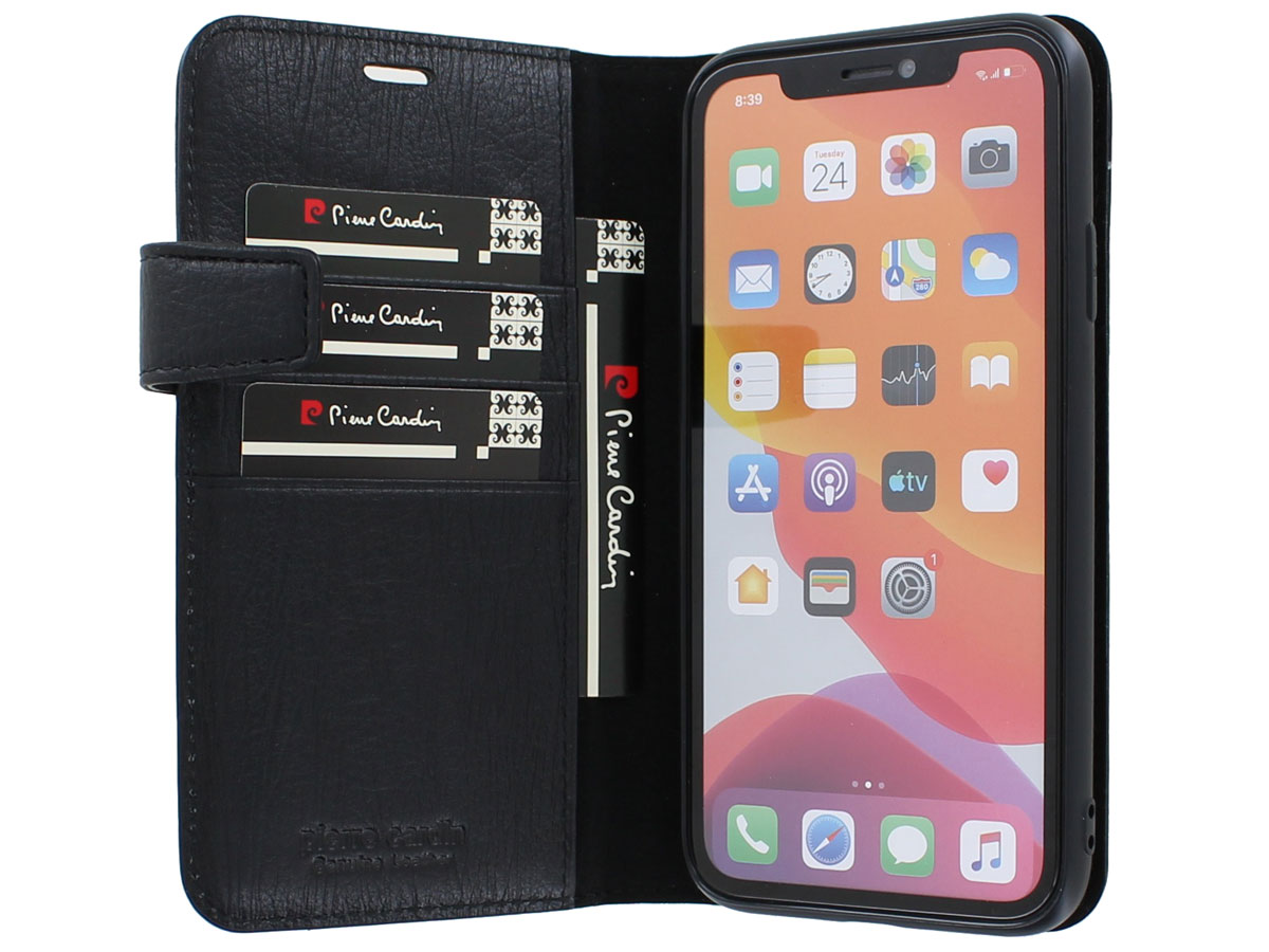 Pierre Cardin Bookcase Zwart Leer - iPhone 12/12 Pro hoesje