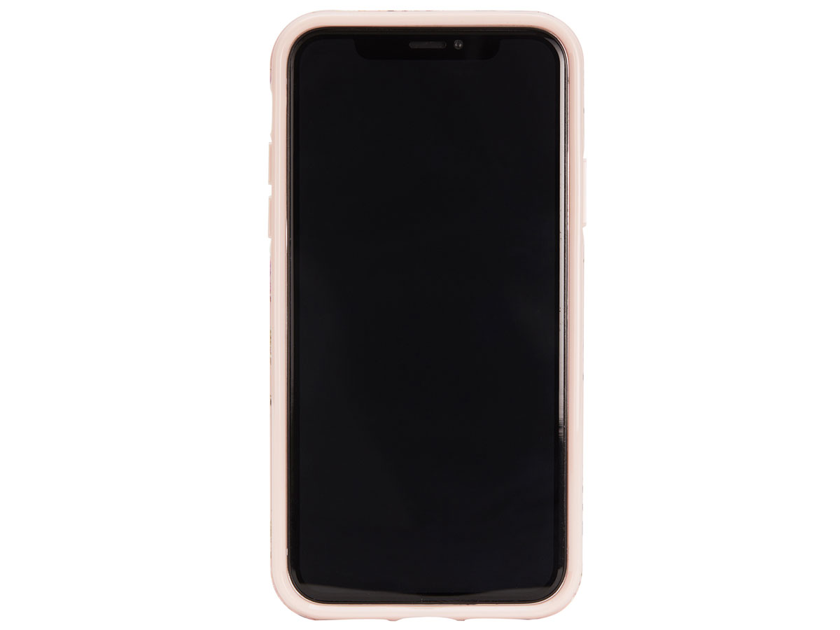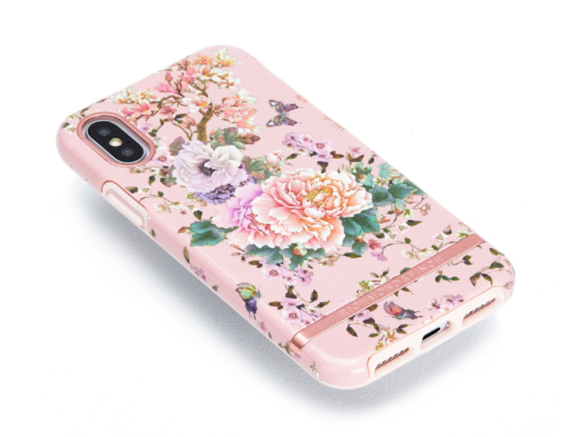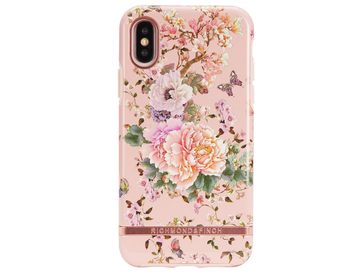 Dit stijlvolle Richmond & Finch hoesje voor de iPhone Xs Max is uitgevoerd in de Peonies & Butterflies print. De voor dit merk kenmerkende metalen strip is bij dit design uitgevoerd in een bijpassende rosé gouden kleur.