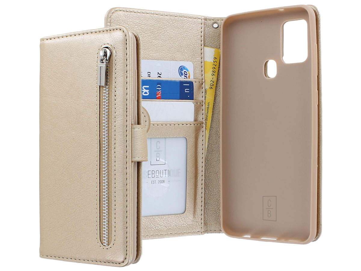 Book Case met Ritsvakje Goud - Samsung Galaxy A21s hoesje