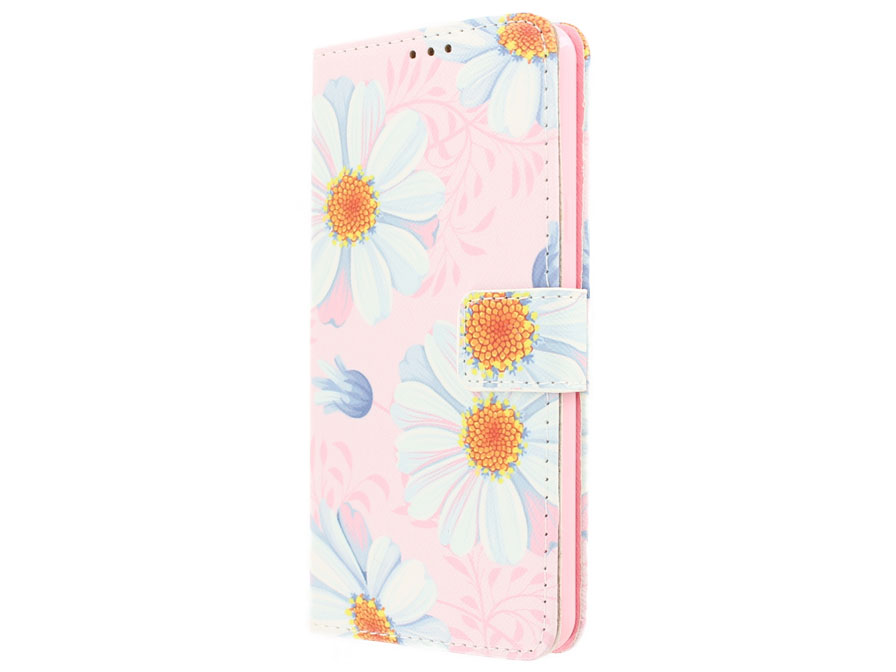 Het Samsung Galaxy A5 2016 hoesje is gemaakt van kunstleer met een schattige madeliefjes print. De case vouwt als een boekje dicht en sluit met een magneetsluiting om zo volledige bescherming rondom te bieden. Het binnenwerk van het telefoonhoesje is gemaakt van TPU: een onbreekbaar en schokabsorberend materiaal dat voor extra goede bescherming zorgt. De Samsung Galaxy A5 2016 blijft volledig functioneel in het hoesje: er is rekening gehouden met alle toetsen, aansluitingen en de camera.
