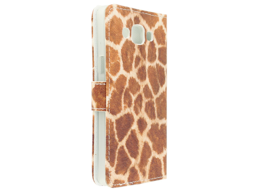 Dit Samsung Galaxy A5 2015 hoesje is speciaal ontworpen voor deze Samsung smartphone met typenummer SM-A500. De book-case is gemaakt van kunstleer en voorzien van een hippe giraffe print.