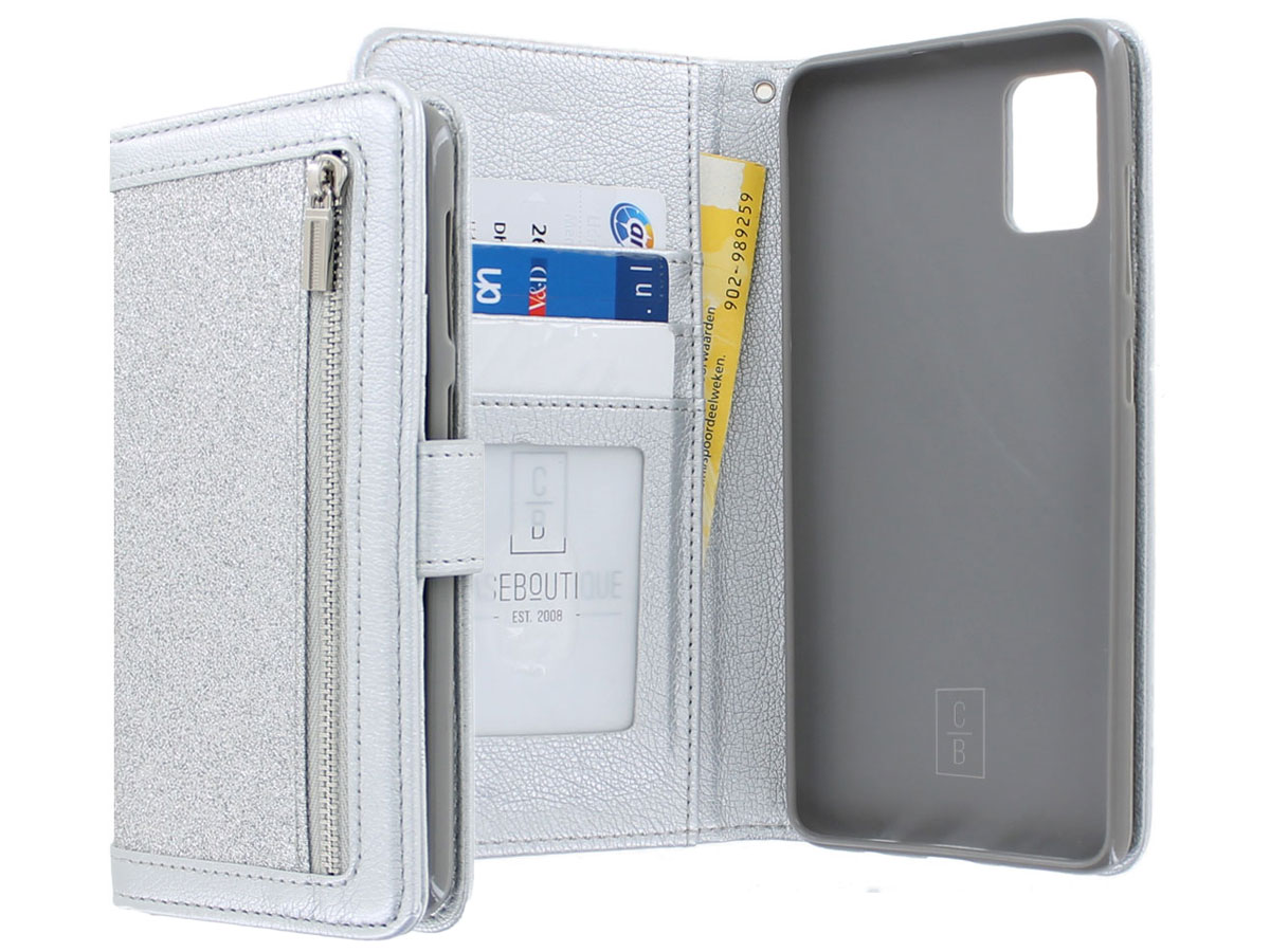 Glitsie Zip Case met Rits Zilver - Samsung Galaxy A51 hoesje