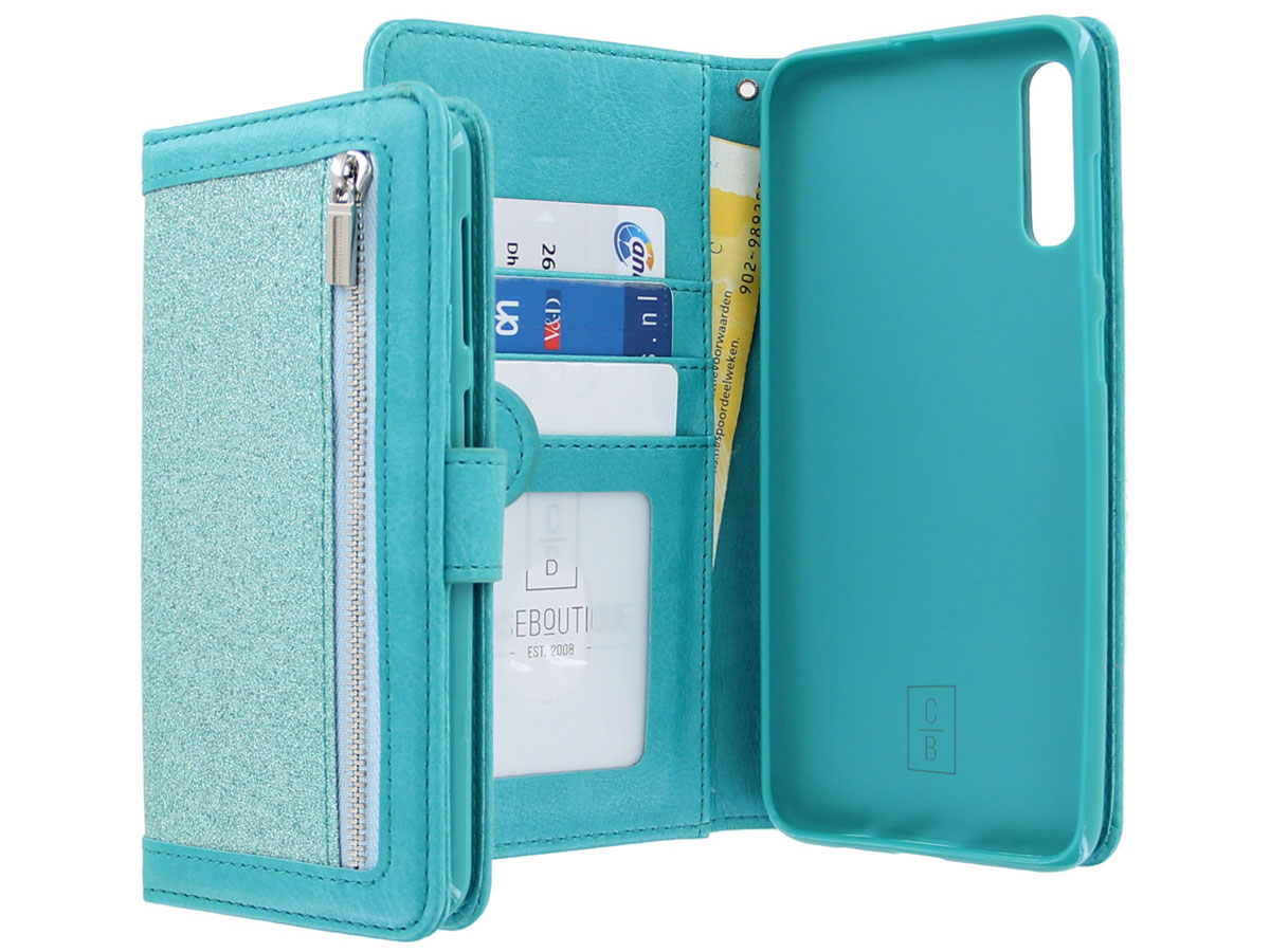 Glitsie Zip Case met Rits Turquoise - Samsung Galaxy A70 hoesje