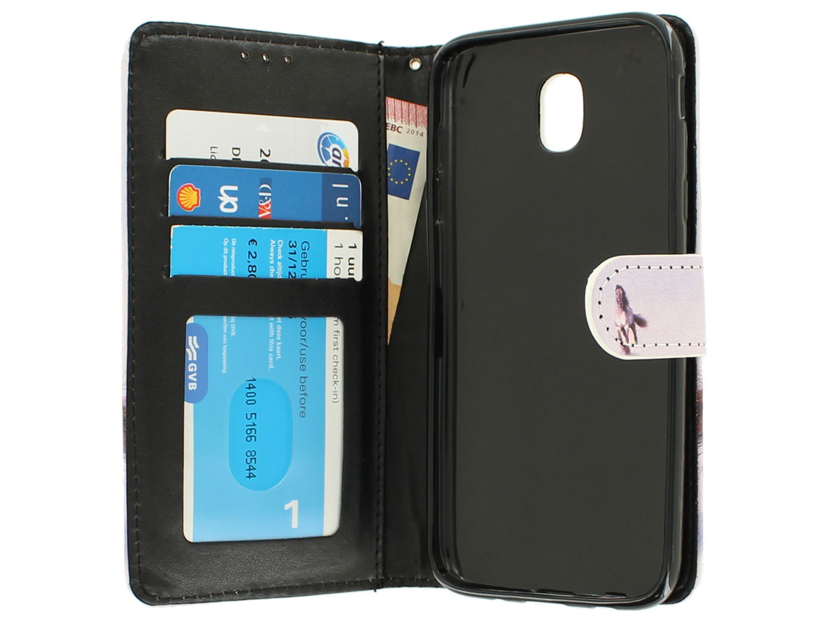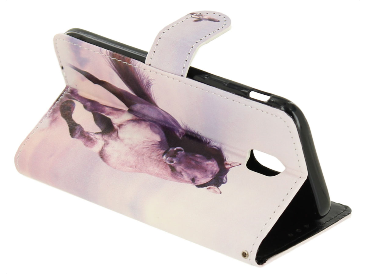 Met dit Samsung Galaxy J3 2017 hoesje zorgt u ervoor dat uw telefoon optimaal beschermd is. Tegelijkertijd geeft u uw toestel een prachtige look dankzij de paarden print, en profiteert u van handige functioneliteit zoals de opbergvakjes voor pasjes en briefgeld en het standaardje om de J5 2017 mee rechtop te zetten.