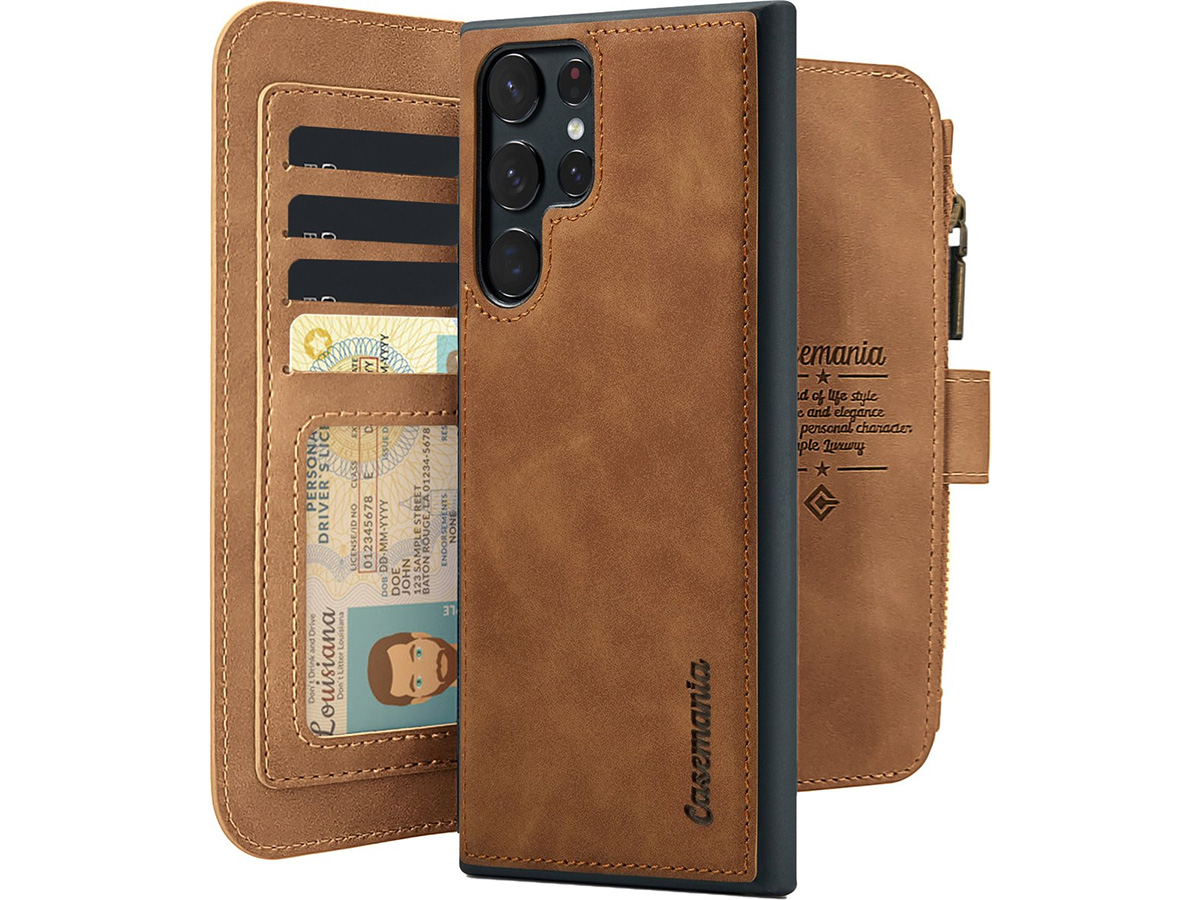 CaseMania 2in1 Wallet Ritsvak Case Bruin - Samsung Galaxy S25 Ultra Hoesje