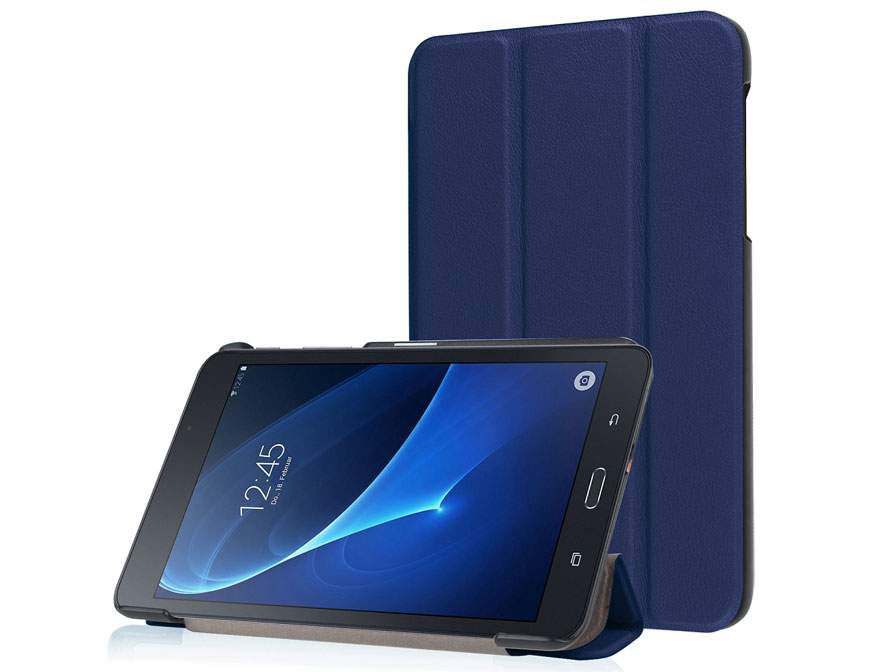 Dit slanke Samsung Galaxy Tab A 2016 (7.0) hoesje beschermt uw toestel én biedt handige functionaliteit. De case is uitgevoerd in diep donkerblauw, maar verkrijgbaar in maarliefst 12 kleuren!