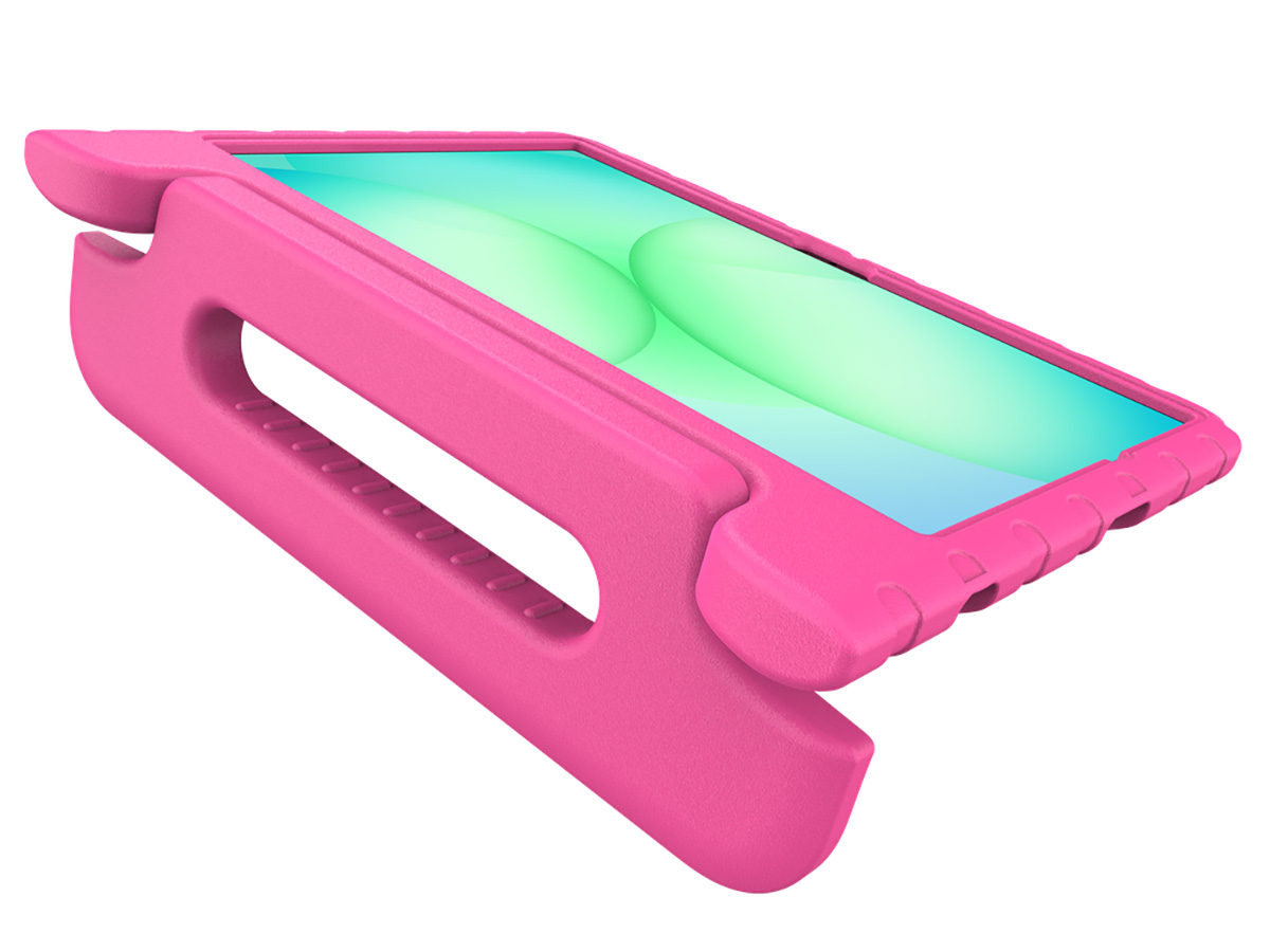 Deze kindvriendelijke Samsung Galaxy Tab A11+ case is zo vormgegeven dat kleine handjes de tablet goed vast kunnen houden. Bovendien zorgt een groot handvat ervoor dat de tablet makkelijk mee gedragen kan worden. Omgeklapt doet het handvat dienst als standaard waarmee de Galaxy Tab A11+ rechtop of licht hellend neergezet kan worden. Ideaal dus voor kinderen, maar natuurlijk óók perfect te gebruiken door volwassenen!