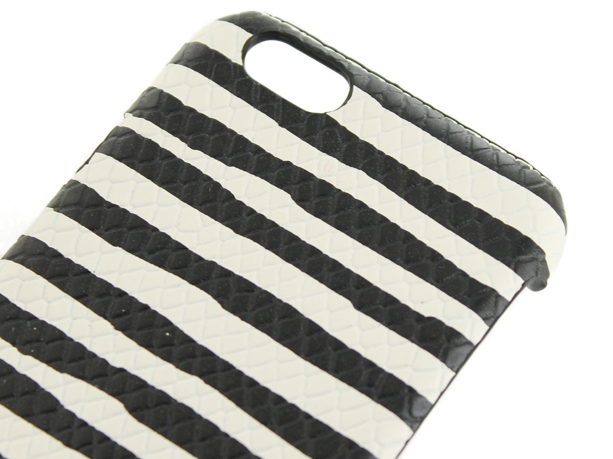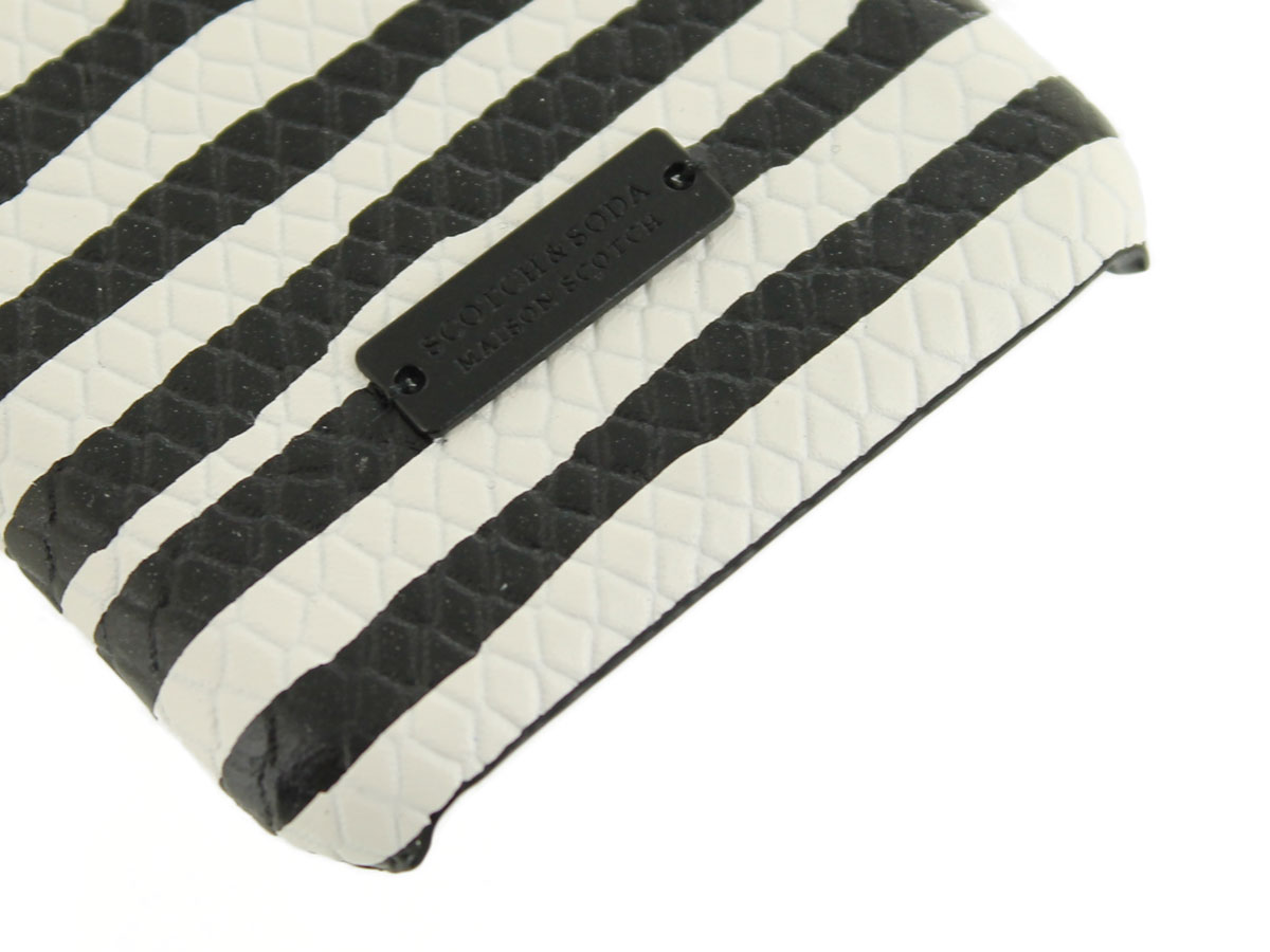 Dit Scotch & Soda iPhone 6/6s hoesje komt uit de nieuwste Maison Scotch collectie. De case is gemaakt van echt leer met een reptiel-achtig relief en uitgevoerd in een zwart wit gestreepte kleurstelling.