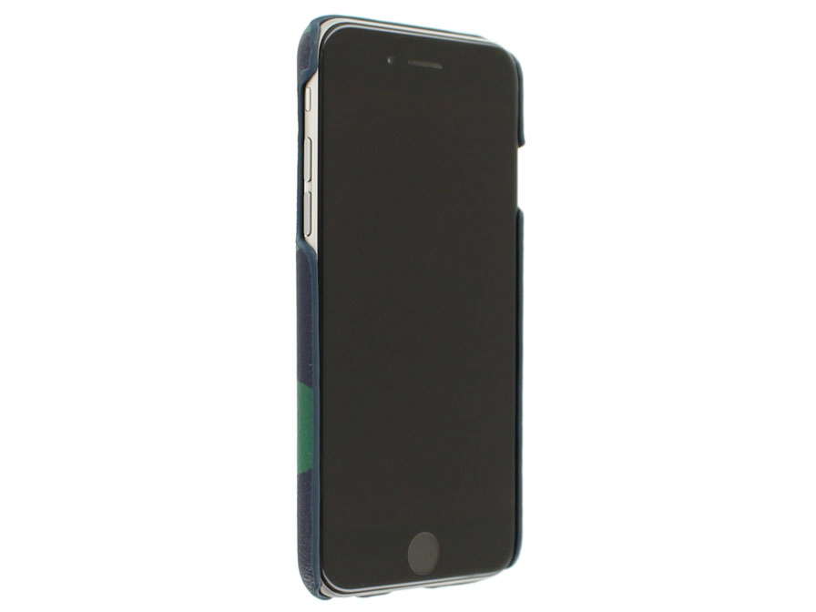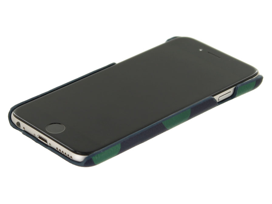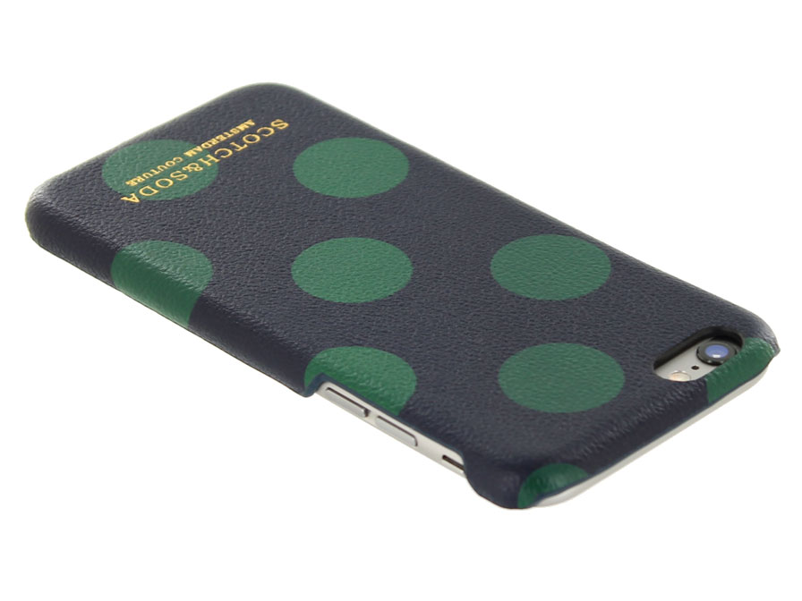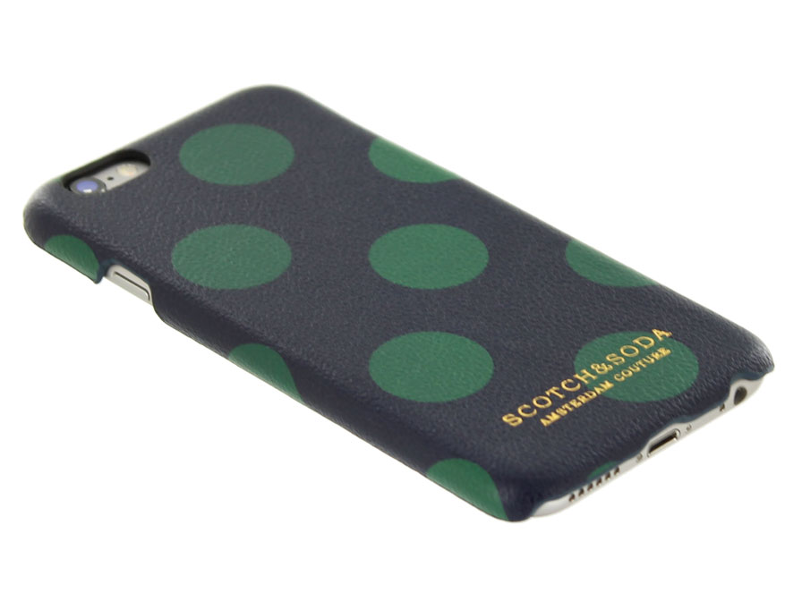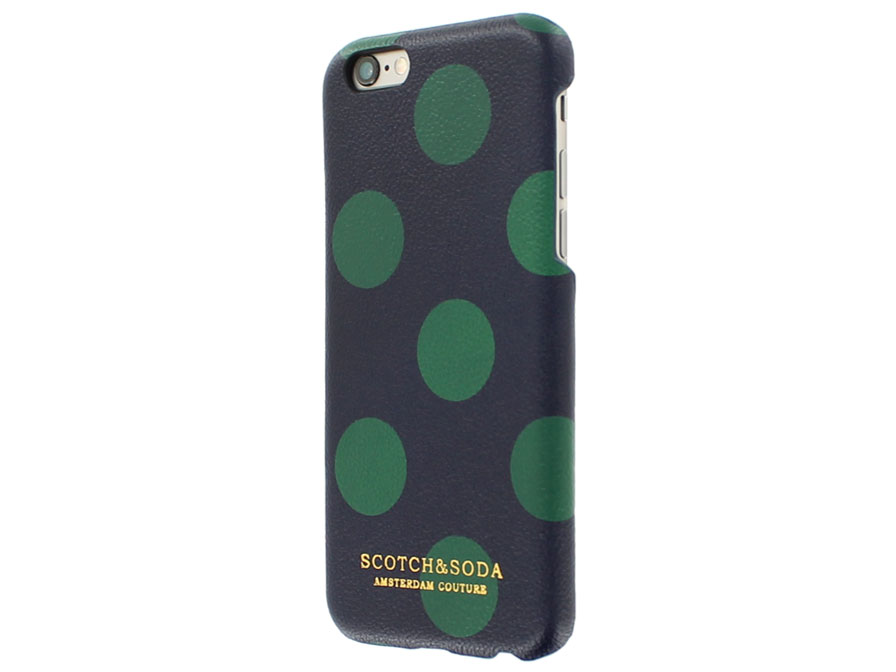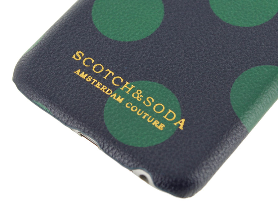 Dit originele Scotch & Soda iPhone 6/6s hoesje beschermt uw smartphone in stijl. De hardcase is bekleed met echt leer, uitgevoerd in donkerblauw met groene stippen. Het Scotch & Soda logo is in goudkleur in het leer gedrukt.