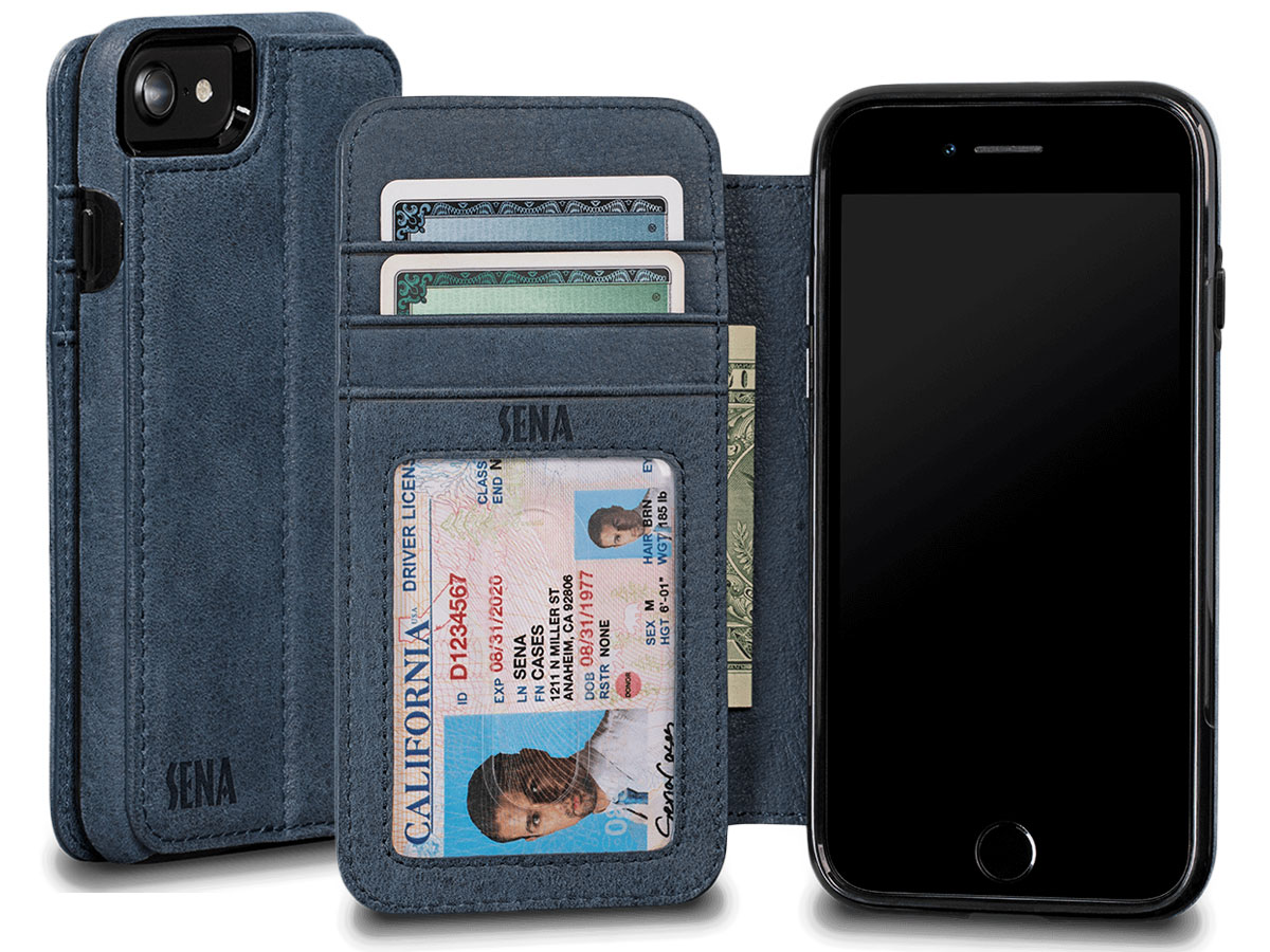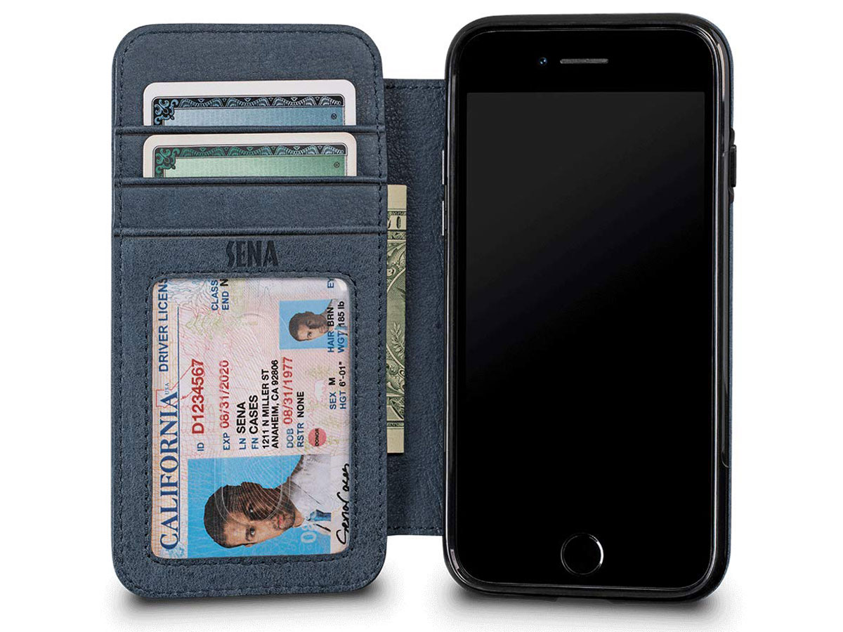 Sena Bence WalletBook Blauw Leer - iPhone SE / 8 / 7 hoesje