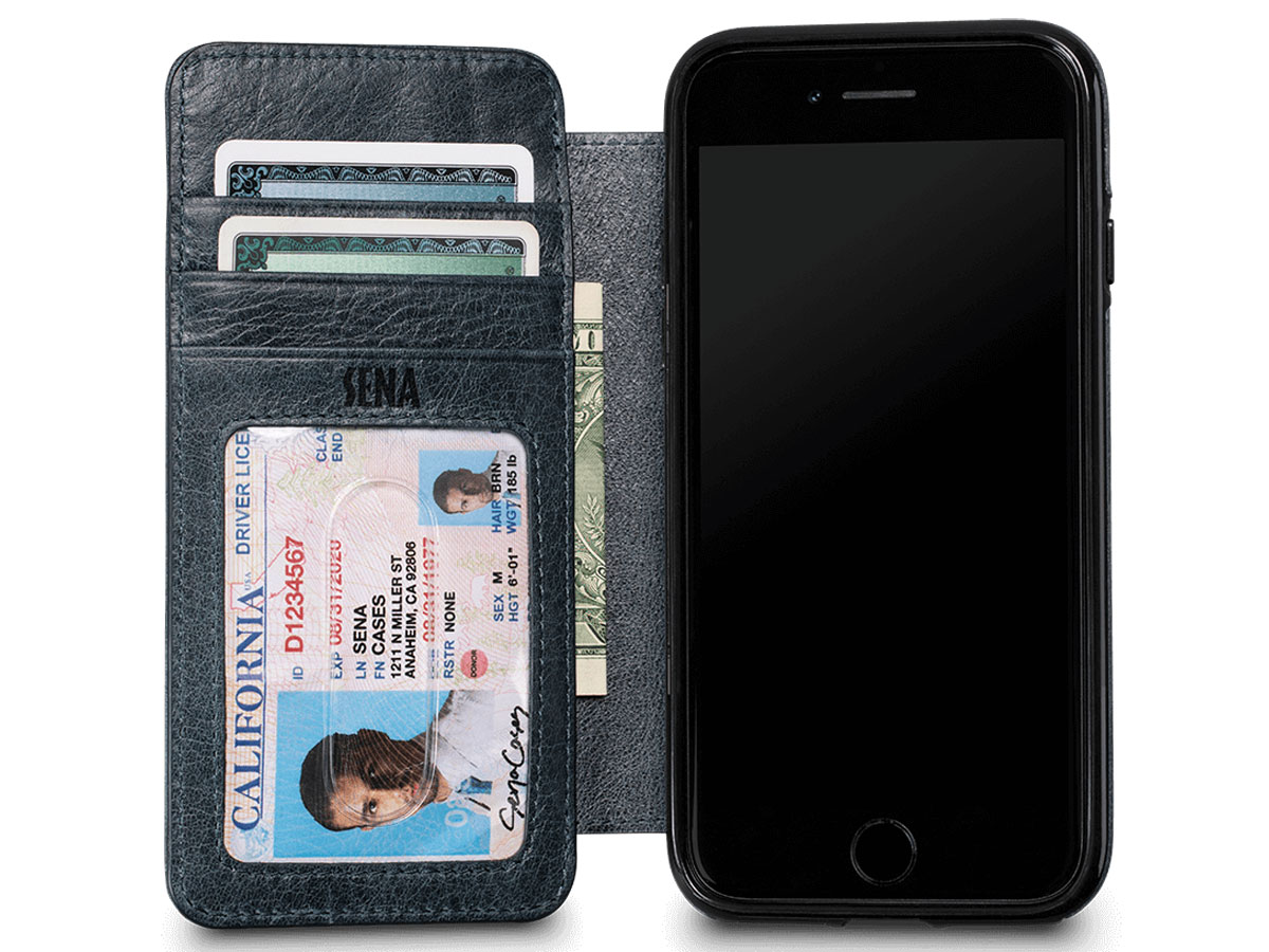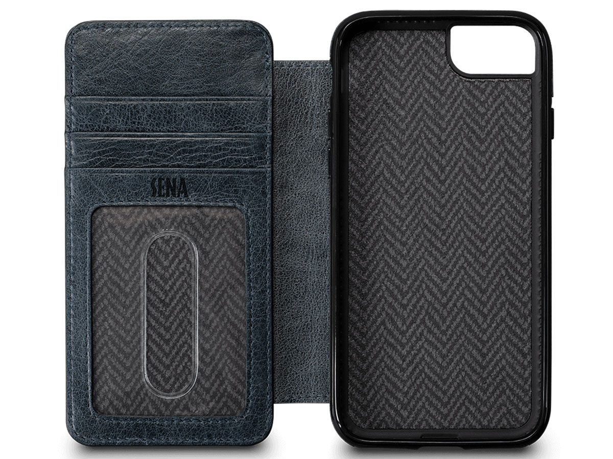 Sena Heritage WalletBook Blauw Leer - iPhone SE / 8 / 7 hoesje