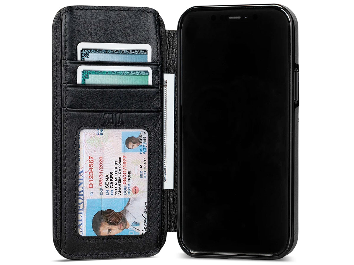 Sena Walletbook Zwart - iPhone 12/12 Pro Hoesje Leer