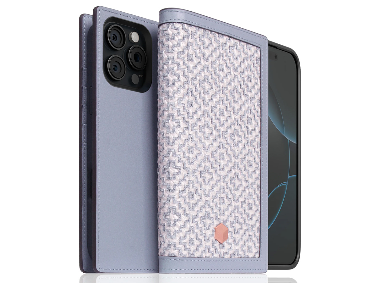 SLG Design D5 2in1 Leather British Textile Folio Ash Blue - iPhone 16 Pro hoesje