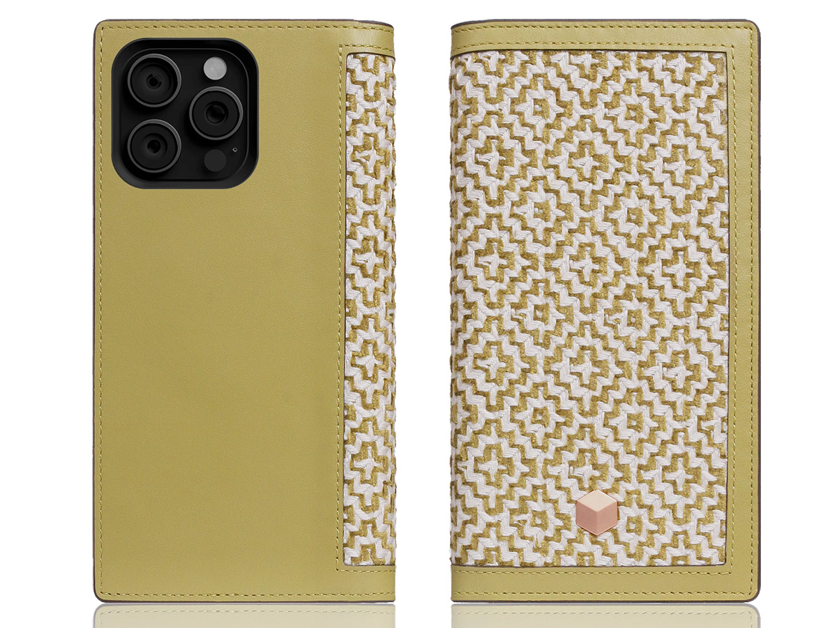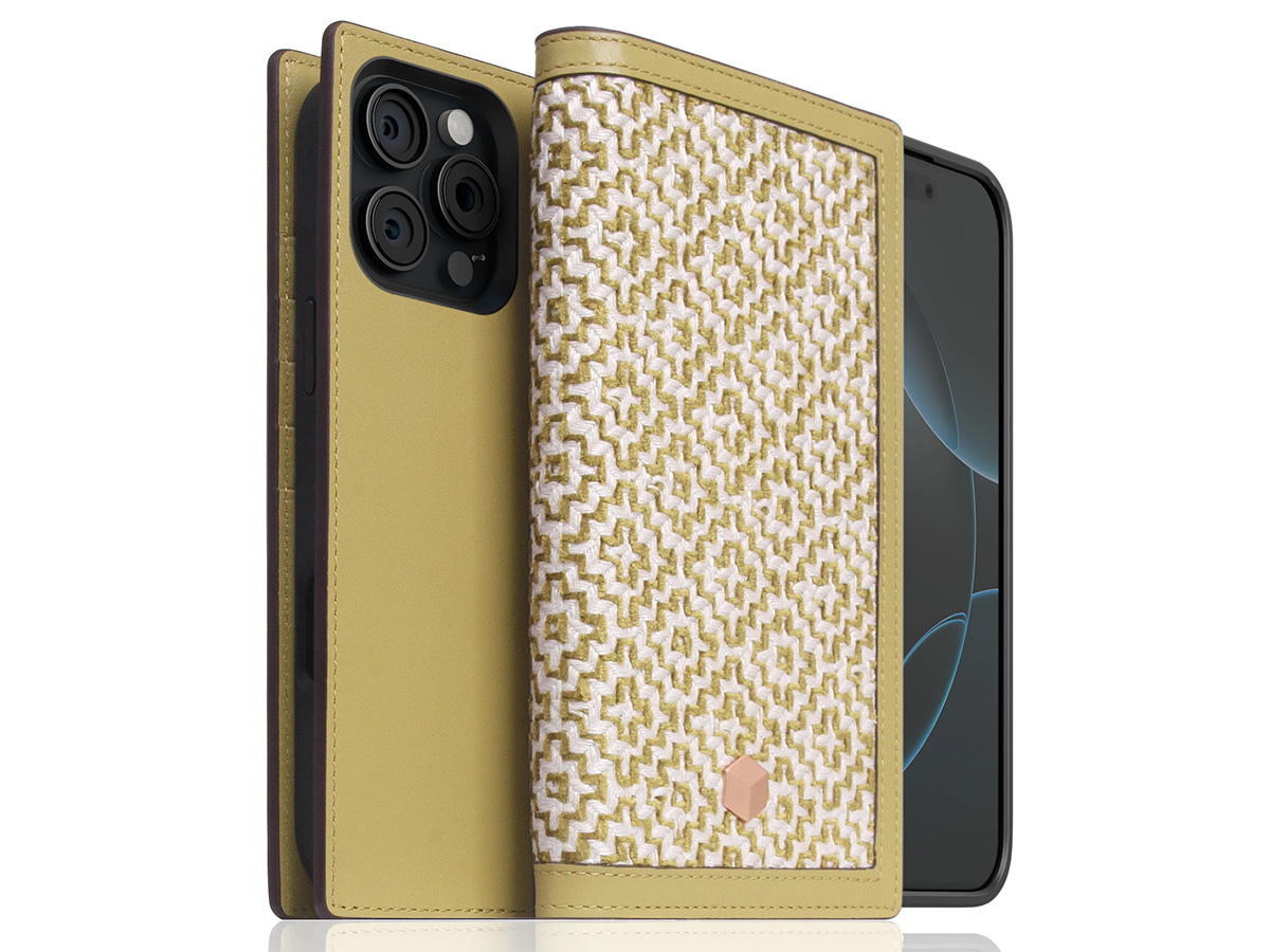 SLG Design D5 2in1 Leather British Textile Folio Lime Olive - iPhone 16 Pro hoesje