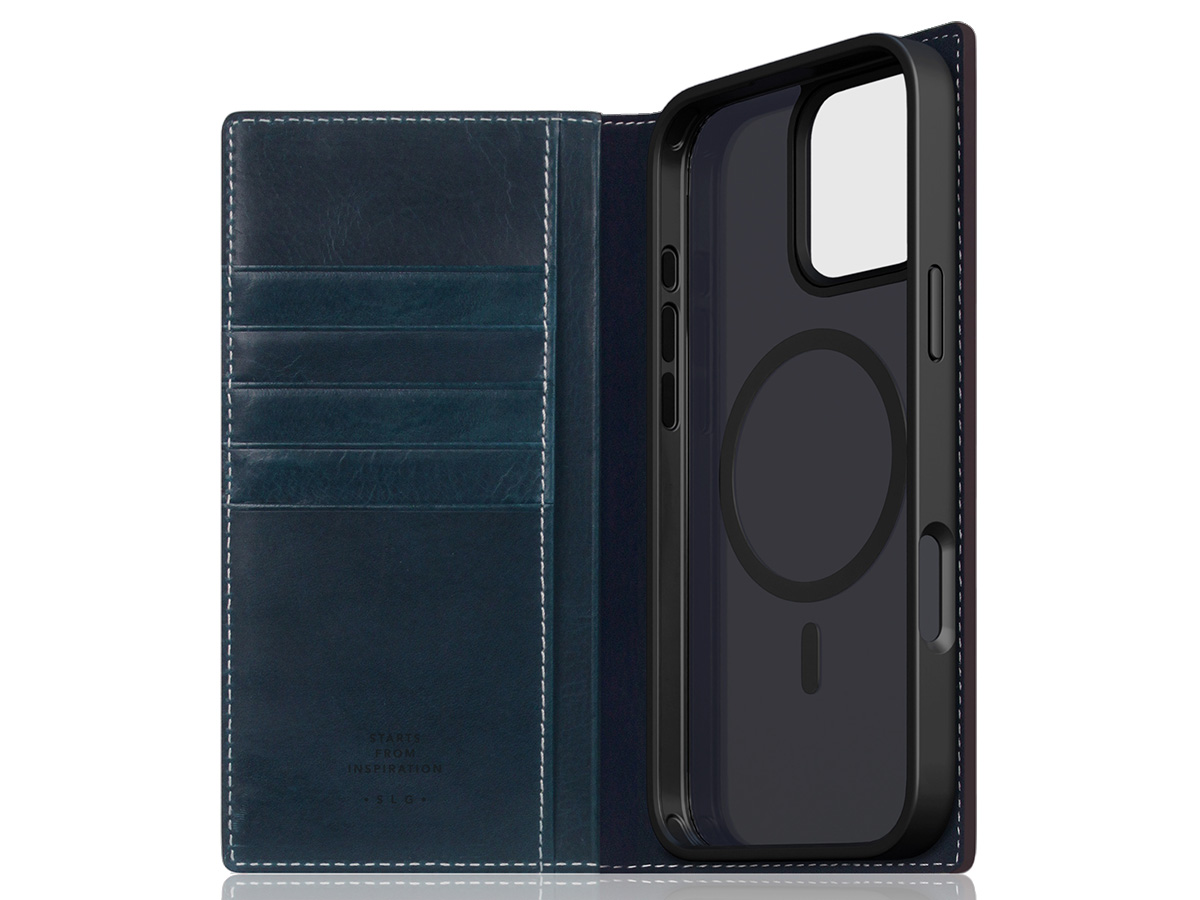 SLG Design D7 Italian Wax Leer Blauw - iPhone 16 Pro hoesje