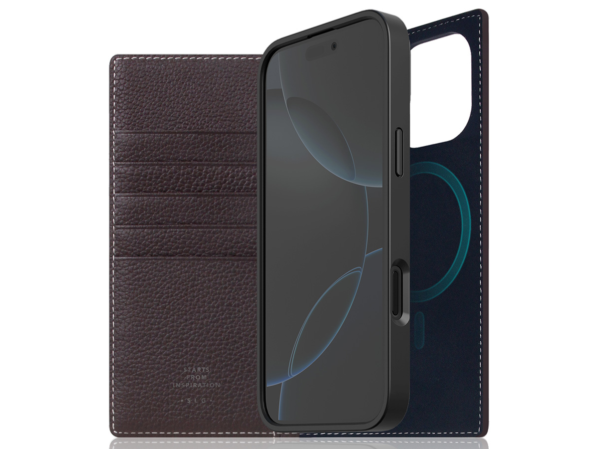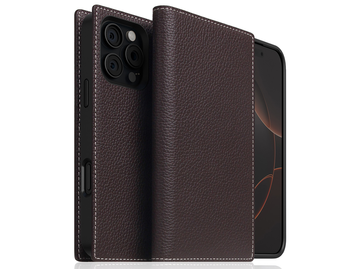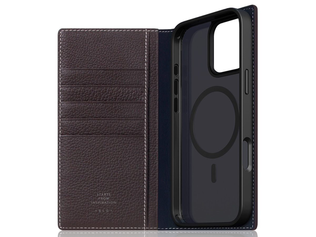 SLG Design D8 2in1 Leather Folio Brown Cream - iPhone 16 Pro hoesje