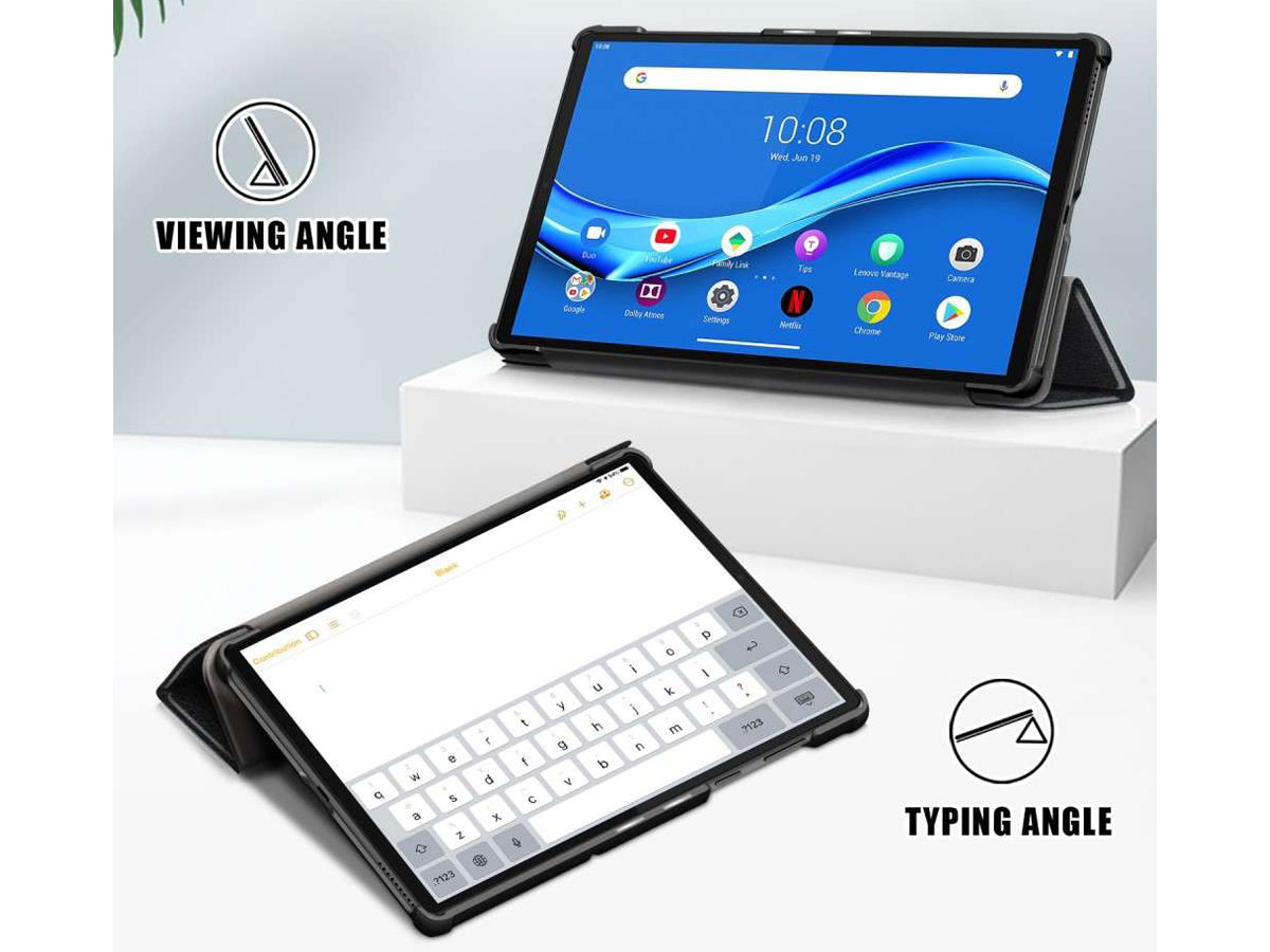 Dit Lenovo Tab M10 FHD Plus hoesje wordt door velen ervaren als het ideale tablet hoesje. De case is mooi slank, ondersteunt het auto-wake mechanisme van de tablet en kan op eenvoudige wijze als standaardje gebruikt worden.