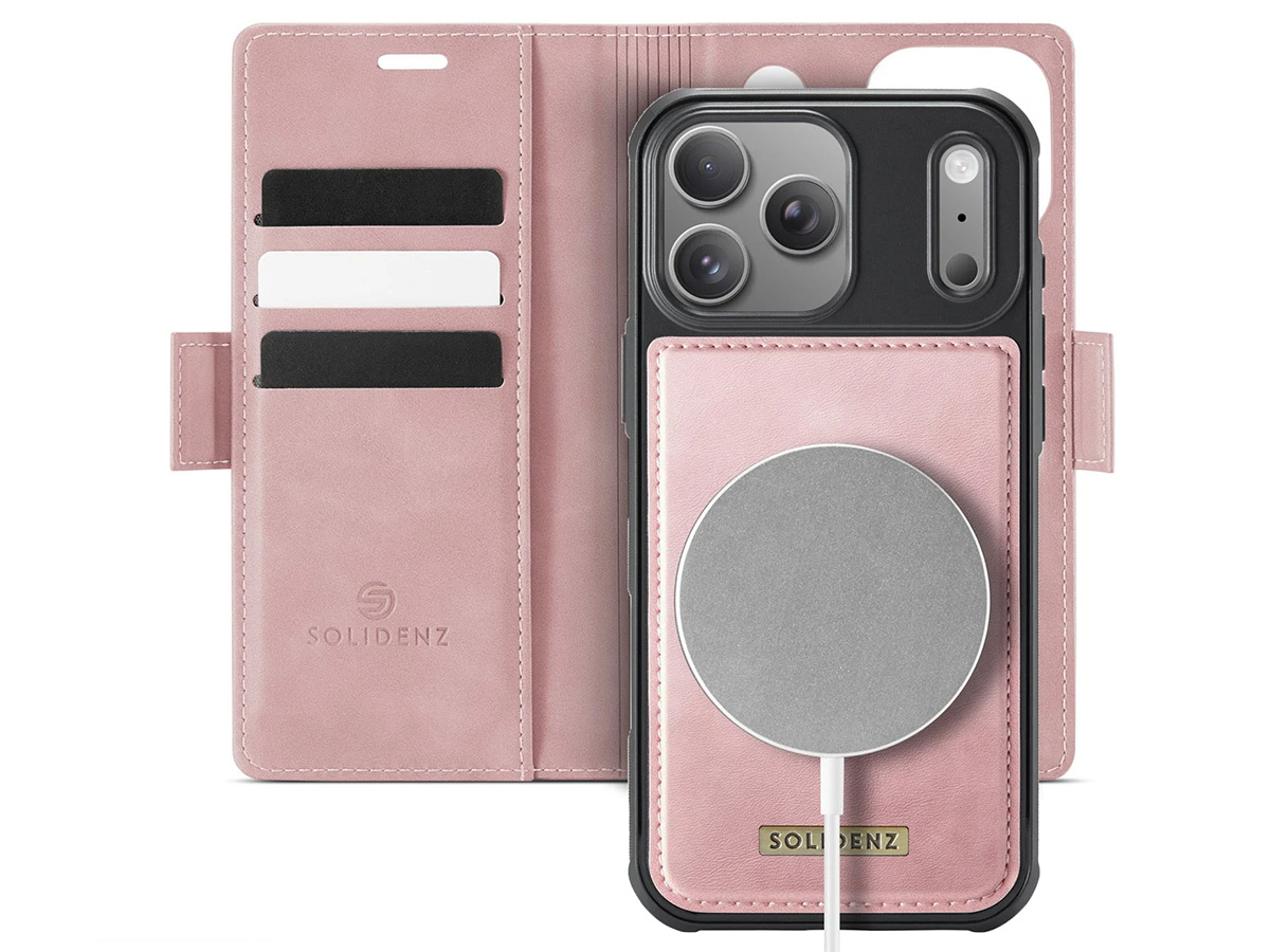 Solidenz 2-in-1 Bookcase MagSafe Roze - iPhone 17 Pro Hoesje