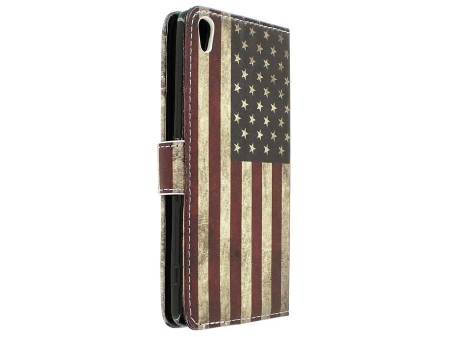 Vintage USA Flag Bookcase - Sony Xperia X hoesje