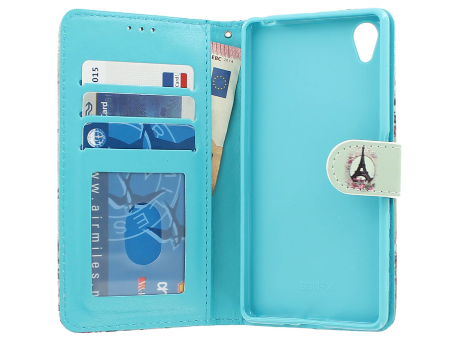 Dit op maat gemaakte Sony Xperia XA hoesje biedt uw toestel bescherming, functionaliteit én een charmante look dankzij de nostalgische Parijs print met de Eiffeltoren.