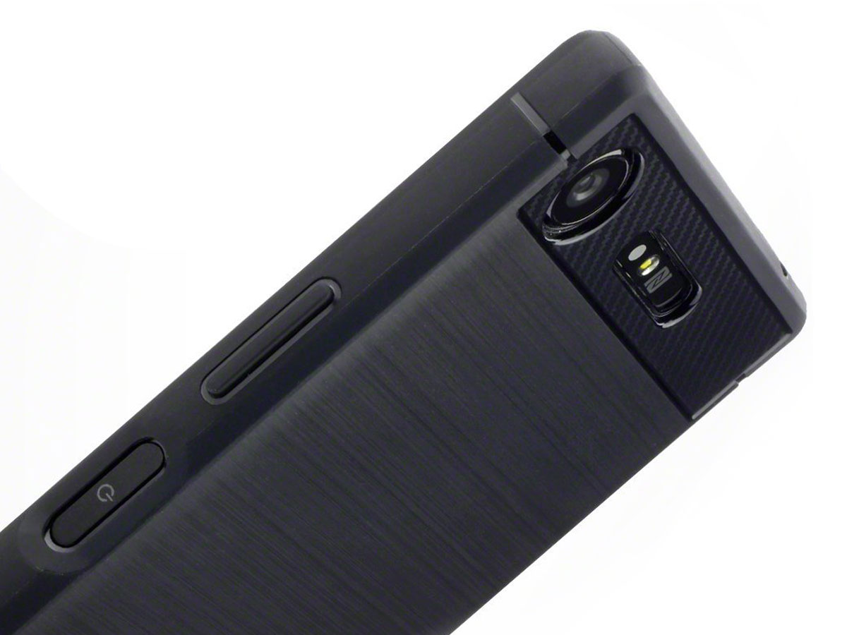Dit stoere Sony Xperia XZ1 hoesje biedt uw toestel een uitstekende bescherming en zorgt bovendien voor een gave, rugged uitstraling. De skin case is mat zwart met een geborsteld aluminium look en glanzende carbon-look details.