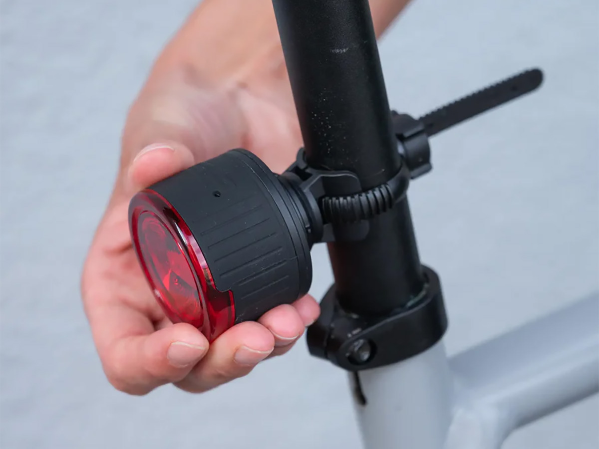 De SP-Connect Bike Rear Light heeft 3 standen: continue branden, knipperstand dag en knipperstand nacht.