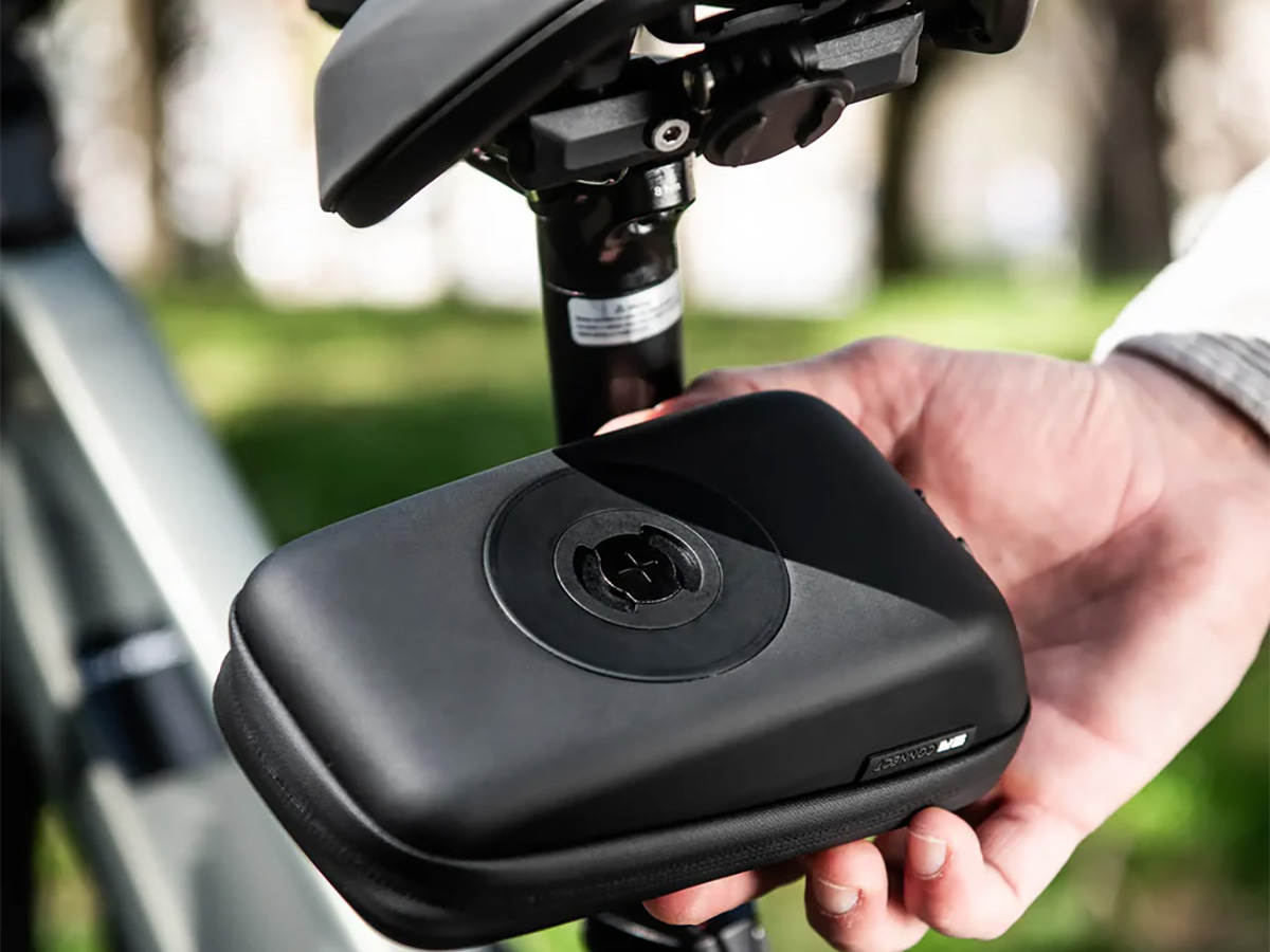 De case kunt u eenvoudig bevestigen en losmaken van de Saddle Mount, dankzij het gepatenteerde "twist-to-lock" mechanisme. Hiermee draait u de case letterlijk in een handomdraai vast of los. De Saddle Case is voorzien van MicroRails waardoor het mogelijk is om de SP-Connect LED achterlicht (los verkrijgbaar) op de case te bevestigen.