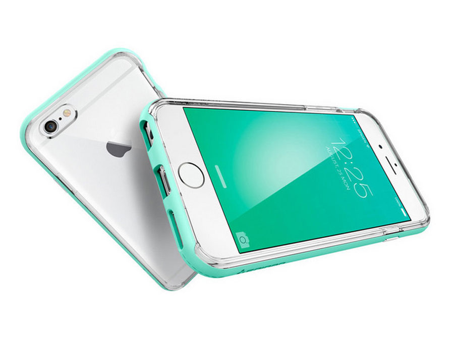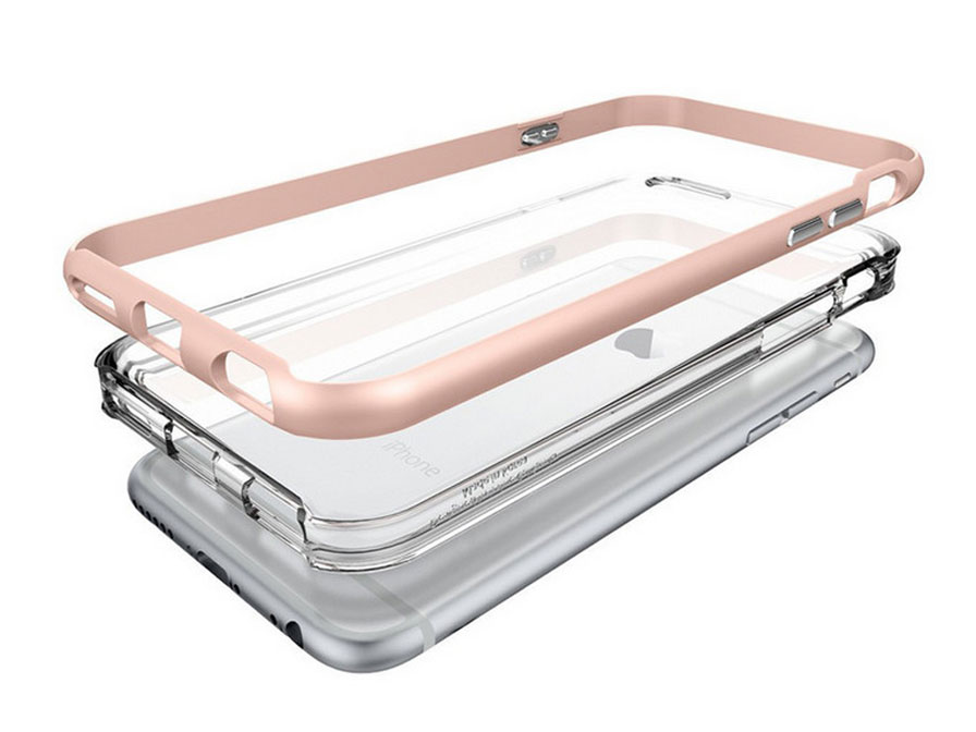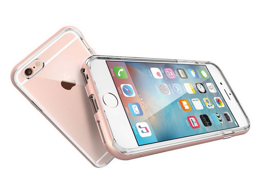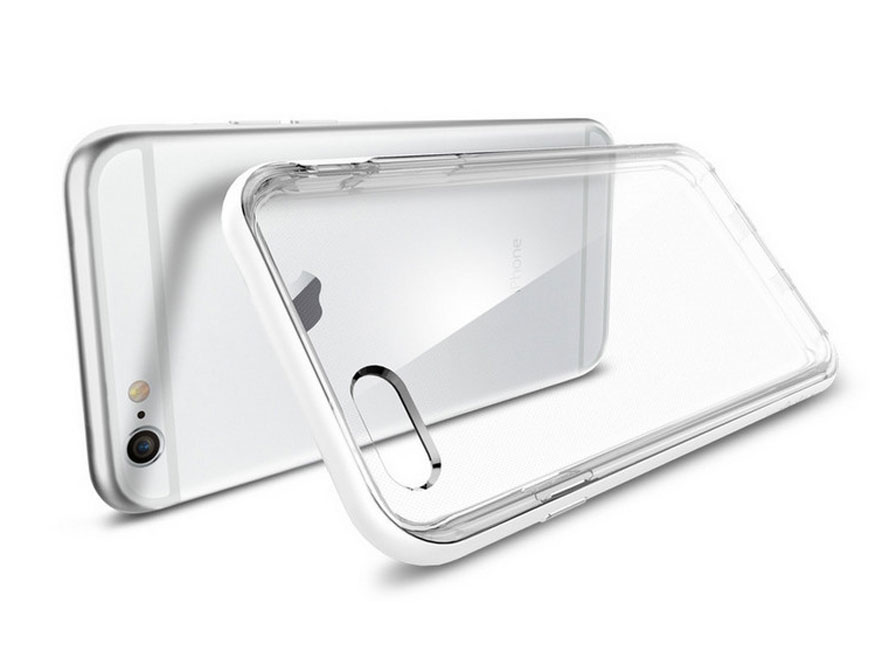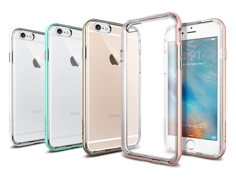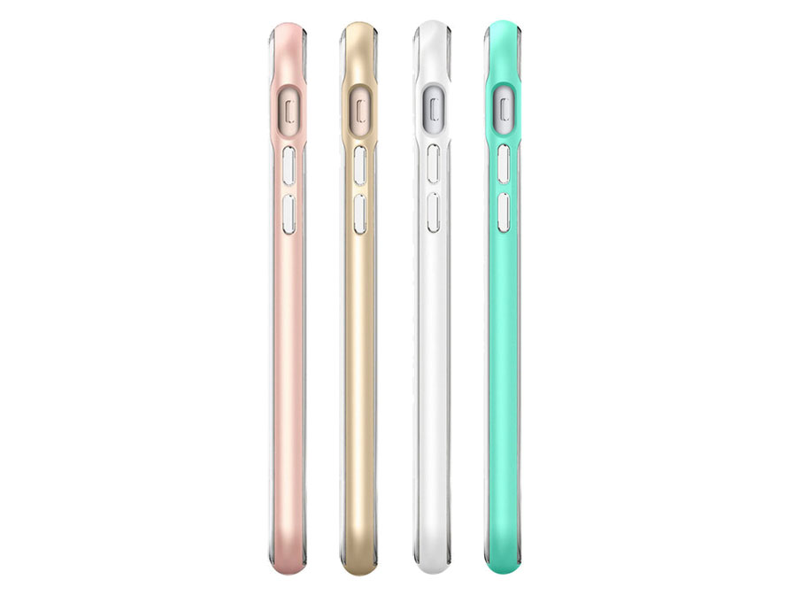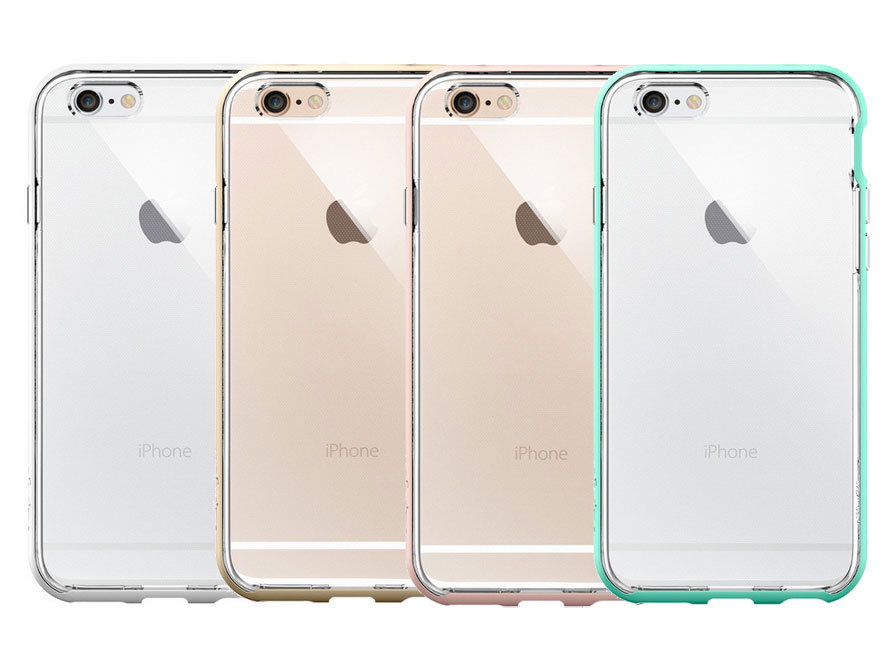 De basis van het Spigen iPhone 6/6s hoesje wordt gevormt door een glashelder doorzichtige TPU skin. Deze laat het design, de kleur en alle details van de iPhone optimaal doorschijnen. Over deze schokabsorberende laag klikt u eenvoudig een sterke polycarbonaat bumper. Deze is verkrijgbaar in verschillende kleuren, en zorgt voor extra impactbescherming op de hoeken en randen. Het geheel blijft zeer slank: de Neo Hybrid EX voegt slechts 0,8mm dikte toe!