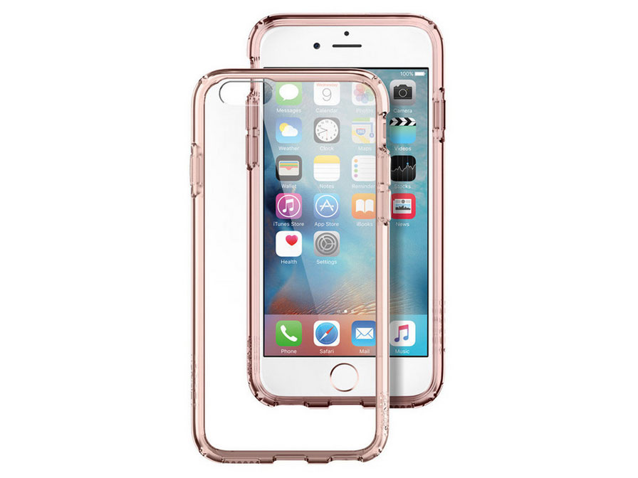 Dit Spigen Ultra Hybrid iPhone 6/6s hoesje is waarschijnlijk de best beschermende onopvallende bescherming die er te krijgen is. De volledig doorzichtige achterzijde is gecombineerd met een rand in een kleur roze die precies bij de rose gold iPhone 6s past.