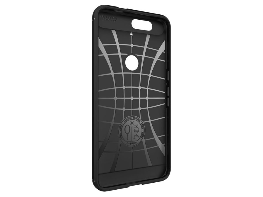 Dit fraaie Spigen Rugged Armor Huawei Nexus 6P hoesje is speciaal voor dit toestel ontworpen. De sterke TPU case heeft een fraaie afwerking met carbon-fiber look panelen en glossy details.