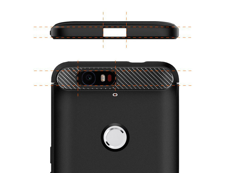 Uiteraard blijft de Huawei Nexus 6P volledig funtioneel in het Spigen hoesje: er is rekening gehouden met alle toetsen en aansluitingen, de camera met laser-autofocus en de vingerafdrukscanner.