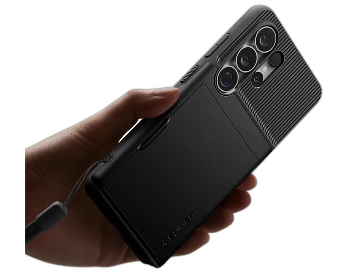De Spigen Slim Armor CS is een slimme combinatie van stevige bescherming en een praktische pasjeshouder voor de Samsung Galaxy S26 Ultra. Dit hoesje beschikt over een verborgen kaarthouder aan de achterzijde, zodat u uw belangrijkste pasjes altijd bij de hand heeft zonder een aparte portemonnee mee te nemen.