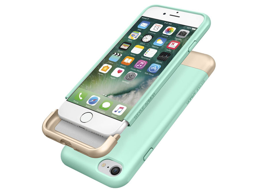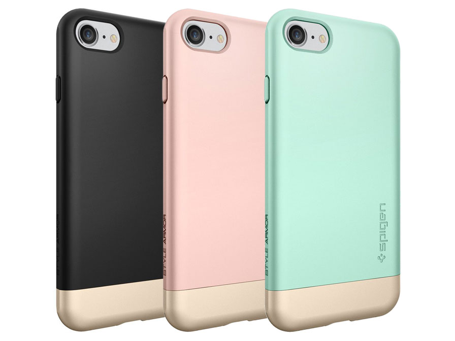 Welke kleur iPhone je ook hebt, met dit iPhone 8/7 hoesje is er altijd een perfecte match te maken. De Spigen Style armor heeft een uniek two-tone design in drie hippe kleuren.