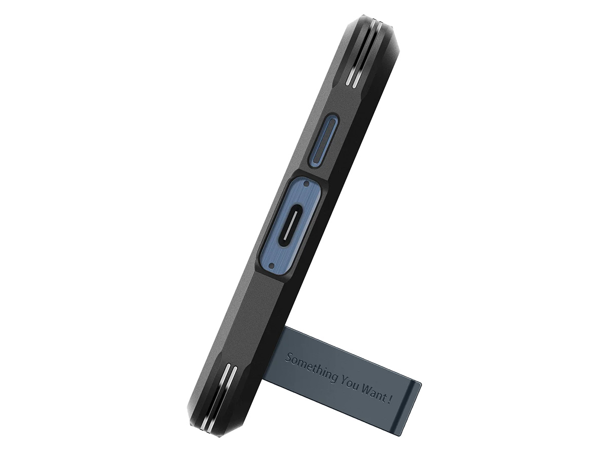 De Samsung Galaxy A55 case is opgebouwt uit meerdere lagen van verschillende materialen. De buitenzijde is van impactbestendig polycarbonaat, de basis is gemaakt van onbreekbaar, schokabsorberend TPU waar bovendien een voering van schuimrubber in zit voor éxtra schokbestendigheid. Het TPU materiaal beschermt ook de meest kwetsbare hoeken en voorziet in een opstaand randje om het scherm en de camera.