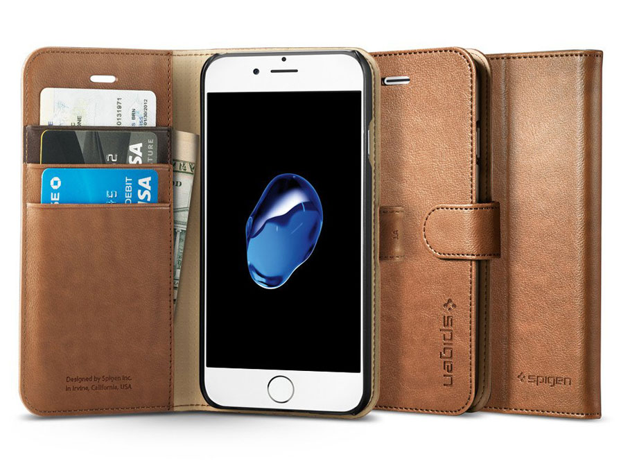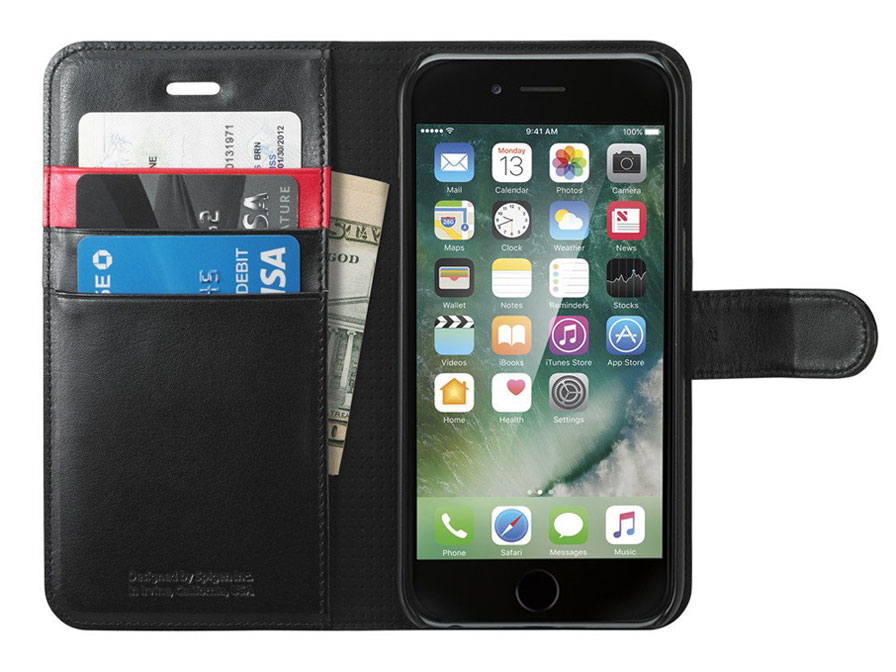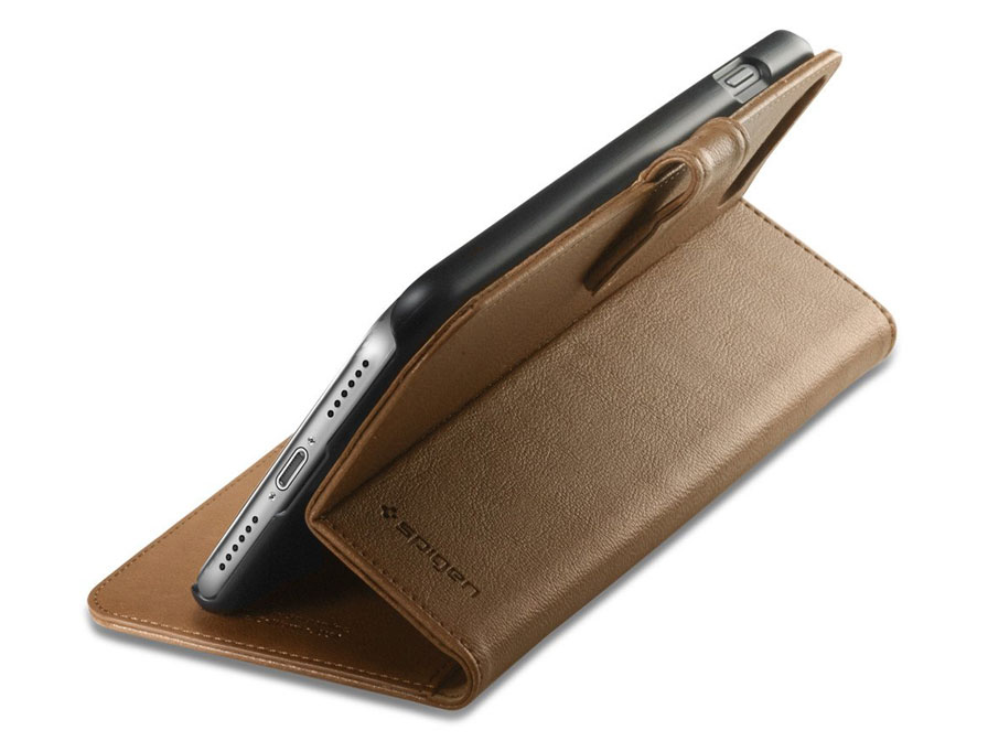 Het Spigen hoesje kan eenvoudig dubbelgevouwen worden voor extra gebruiksgemak en herbergt zowel een standaardje als meerdere opbergvakjes. Hierdoor kunt u al uw belangrijkste pasjes, visitekaartjes en briefgeld onder handbereik houden in uw iPhone 8/7 hoesje.