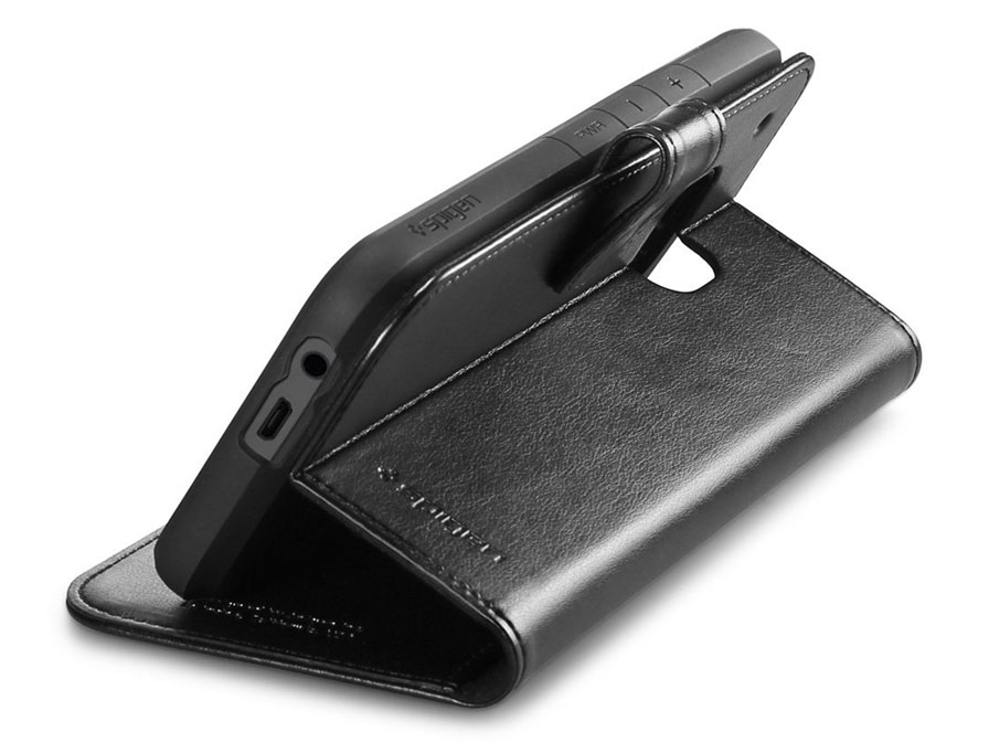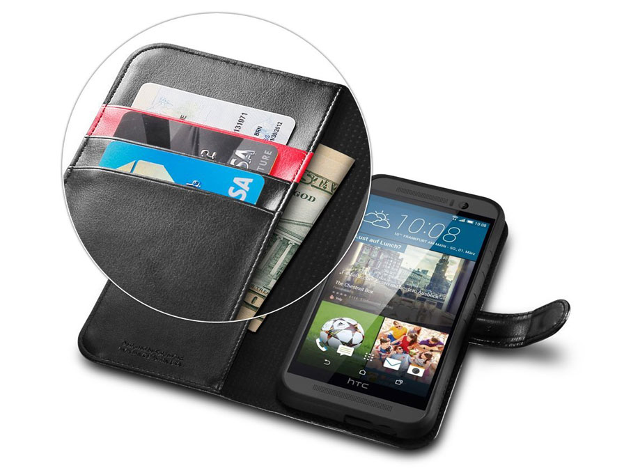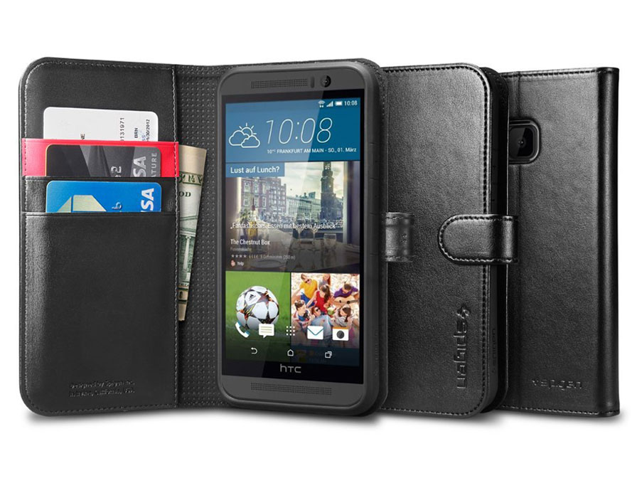 Het Spigen Wallet S HTC One M9 hoesje is gemaakt van chique PU leer en opent als een boekje. Het hoesje is geheel in zwart uitgevoerd, op één subtiel rood detail na bij de vakjes voor pasjes. De precies op maat gemaakte houder in het hoesje voor het toestel is van TPU gemaakt en daardoor onbreekbaar en extra schokabsorberend.