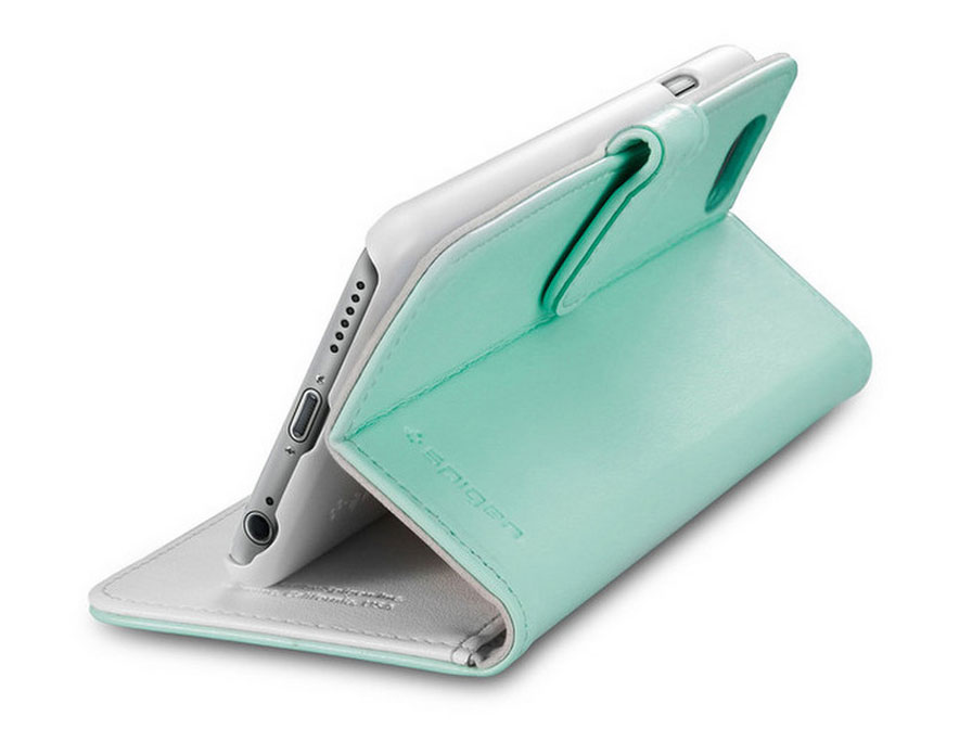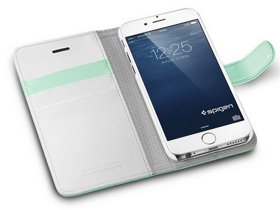 Het Spigen iPhone 6/6s hoesje klikt eenvoudig om het toestel heen, en beschermt geheel rondom doordat het telefoonhoesje als een boekje dichtgeklapt kan worden en met een magneetsluiting sluit. Daarbij blijft de iPhone 6/6s wel volledig functioneel: er is rekening gehouden met alle toetsen, aansluitingen en de camera.