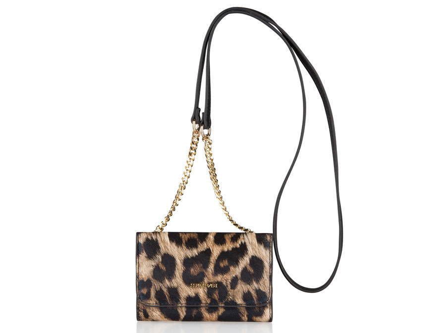 Het iPhone-hoesje vouwt in drie delen dicht, sluit met een magneetsluiting en heeft een matchende schouderband met metalen schakels. In het smartphonehoesje is er uiteraard een speciale plek voor je iPhone, maar ook ruimte om meerdere pasjes, visitekaartjes en briefgeld op te bergen.