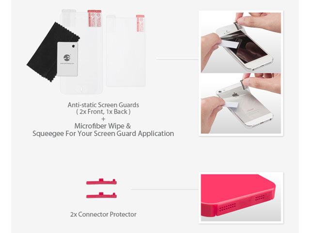 Zoals gebruikelijk bij SwitchEasy krijg je flink wat extra’s bij de Nude case voor de iPhone SE/5s/5. Switcheasy levert twee screenprotectors mee, een microfiber-doekje, en meerdere afdekdopjes voor de onderzijde zodat de koptelefoon-aansluiting en de Lightning connector vrij van stof blijven.