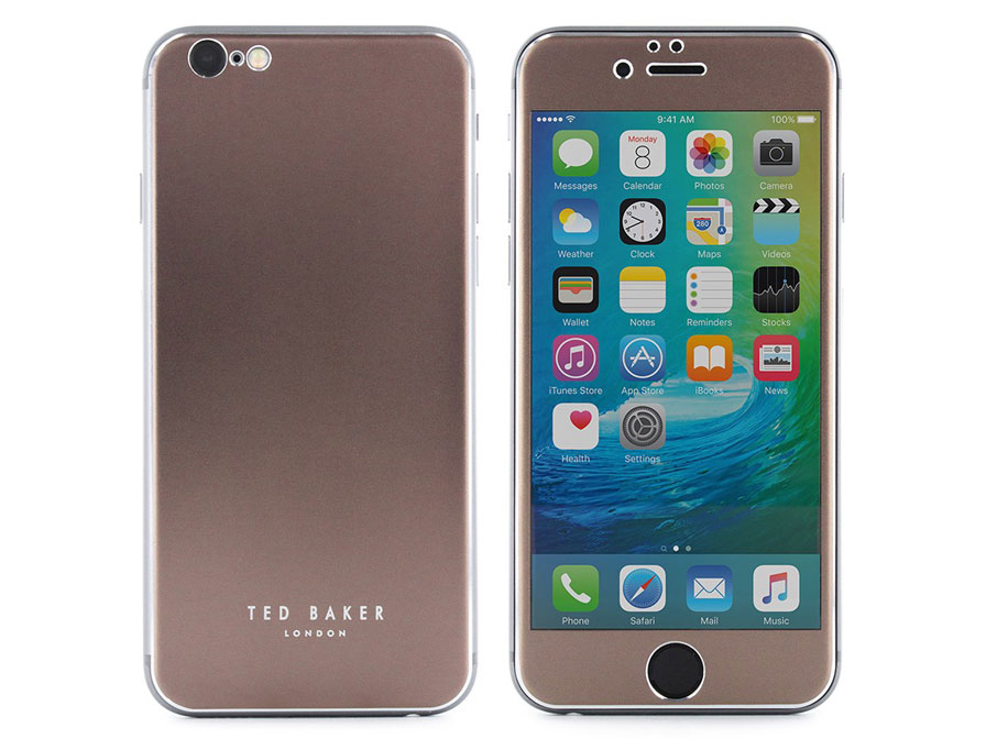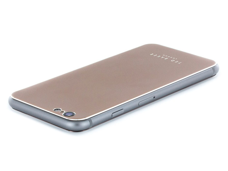 Dit unieke Ted Baker iPhone 6/6s hoesje pakt de bescherming van uw iPhone op een geheel eigen wijze aan. De case bestaat uit twee aluminium delen in een prachtige champagne gouden kleur, waarbij het Ted Baker logo achterop in het metaal is gegraveerd.