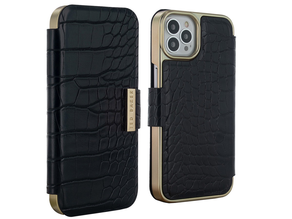 Ted Baker Black Croco Folio Case - iPhone 12/12 Pro Hoesje