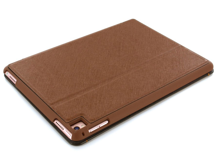 De Ted Baker hoes is gemaakt van kwalitatief hoogwaardig kunstleer in een fraaie tan kleur, met een zwarte voering. De iPad Pro 9.7 case is heel slank van design dankzij de onzichtbaar weggewerkte magneetsluiting. Bovendien kan het iPad hoesje eenvoudig als standaard gebruikt worden, met keuze uit verschillende standen.