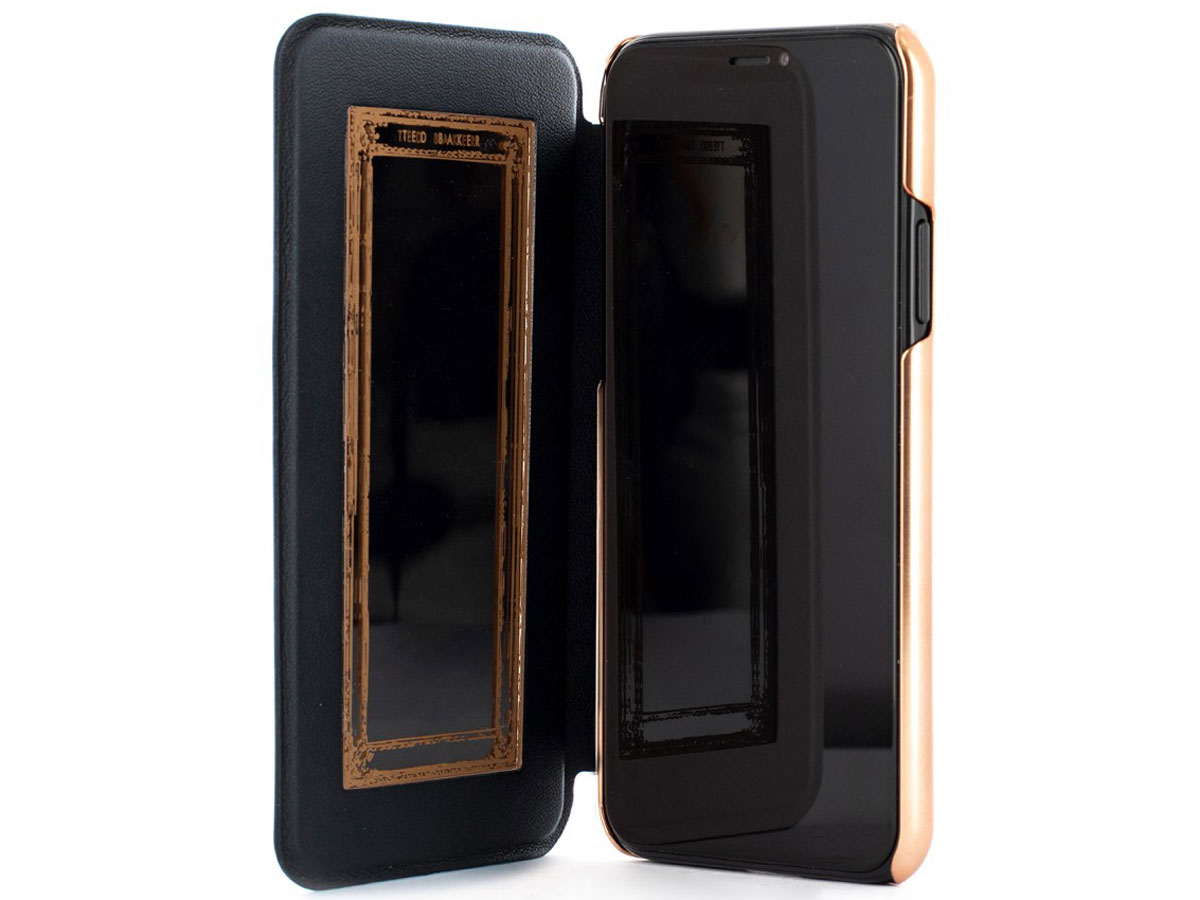 Het Ted Baker iPhone hoesje heeft een mooi slank design, terwijl deze uw toestel toch rondom beschermt. Dit is te danken aan de onzichtbare magneetsluiting die bovendien twee kanten op werkt en het klepje ook omgeslagen vast houdt. In de voering van het klepje vindt u een spiegeltje om op ieder moment een snelle touch-up te doen.