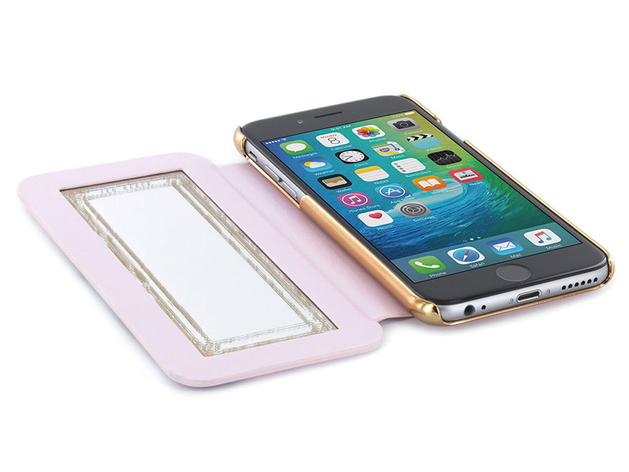 Het Ted Baker iPhone hoesje heeft een zeer slank ontwerp dankzij de onzichtbare magneetsluiting. Die werkt bovendien twee kanten op, zodat het klepje ook opengeklapt vastgehouden wordt. Binnenin het klepje zit een spiegeltje met Ted Baker logo verwerkt.